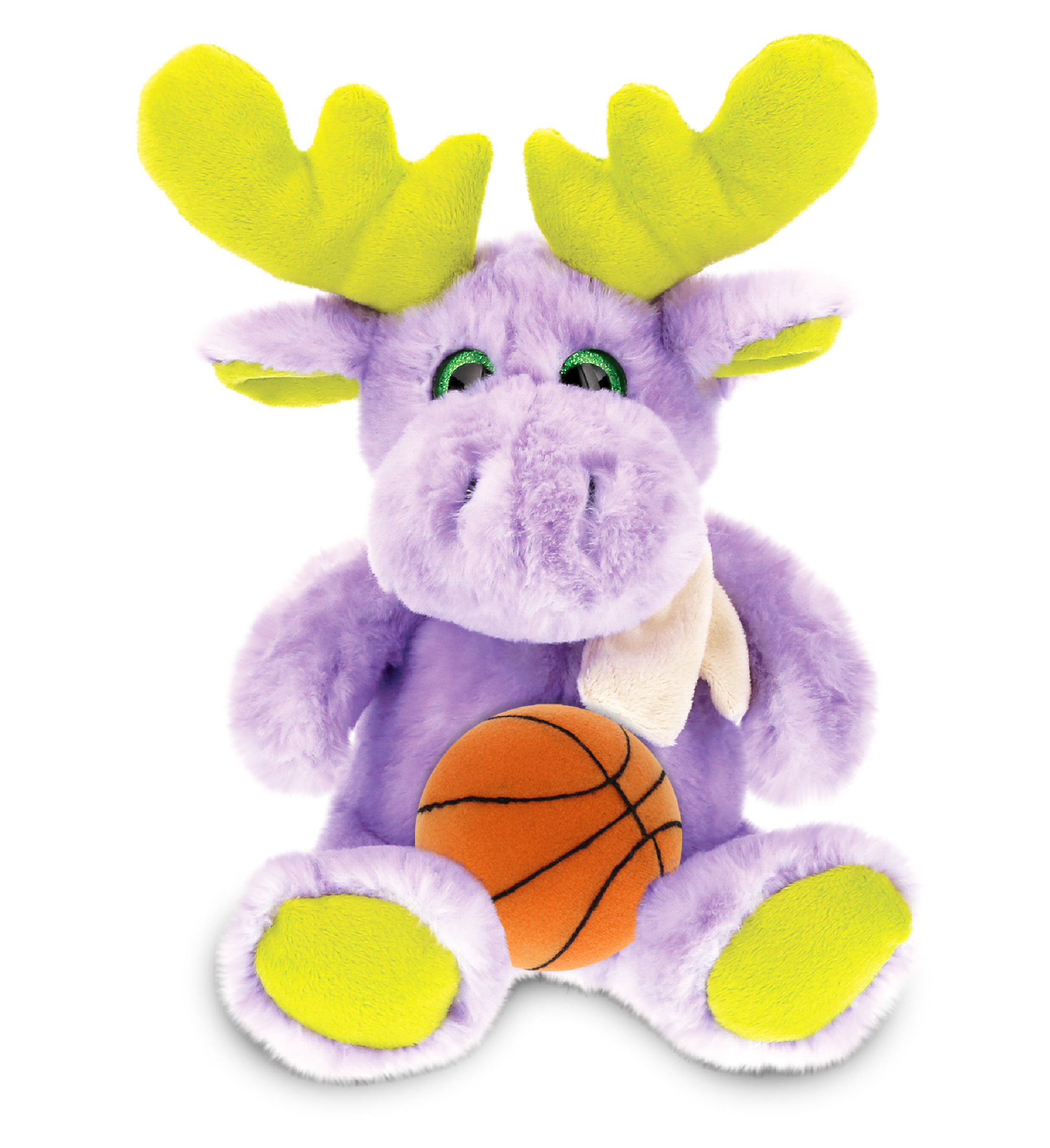 - Personalization, Customization, and Add-On Options – The Super Soft Sports Stuffed Animal Sitting Purple Moose with Scarf comes customized with a Basketball Plush. You can personalize your moose plush toy with the name of your loved one, which we will imprint on the item. You also have the option to add some or all of the cool add-ons to make your plush gift extra special: 1) Gift Bag; 2) Tissue Paper; 3) Greeting Card.