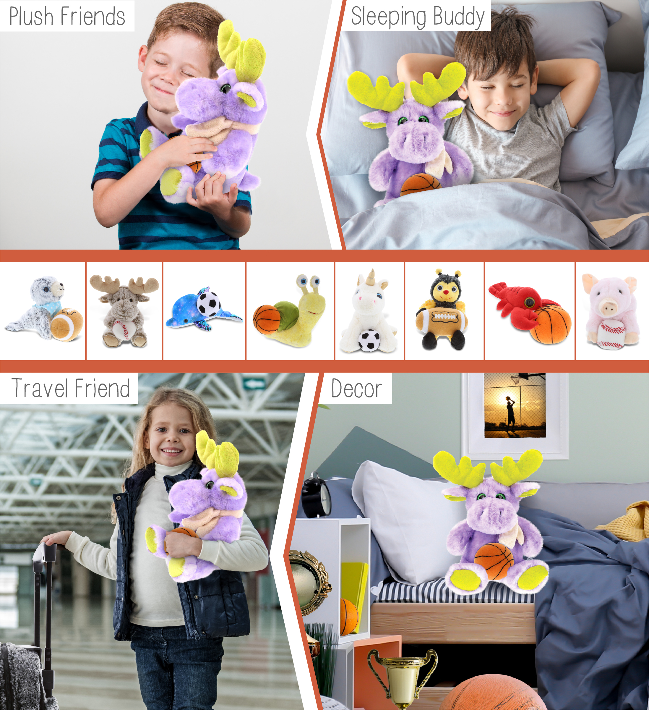 - Included with the Purchase of Adorable Cute Moose Plush – Includes 1 DolliBu Sitting Purple Moose with Scarf Plush with a basketball plush, decorated with realistic features of a cute plush animal. The moose body with a sports gift ball plush makes the plush perfect for cuddles. The moose plush toy features details like its characteristic antlers. The moose eyes make the critter so charming. The plush toy buddy measures 7.5Lx6.5Wx12H inches.