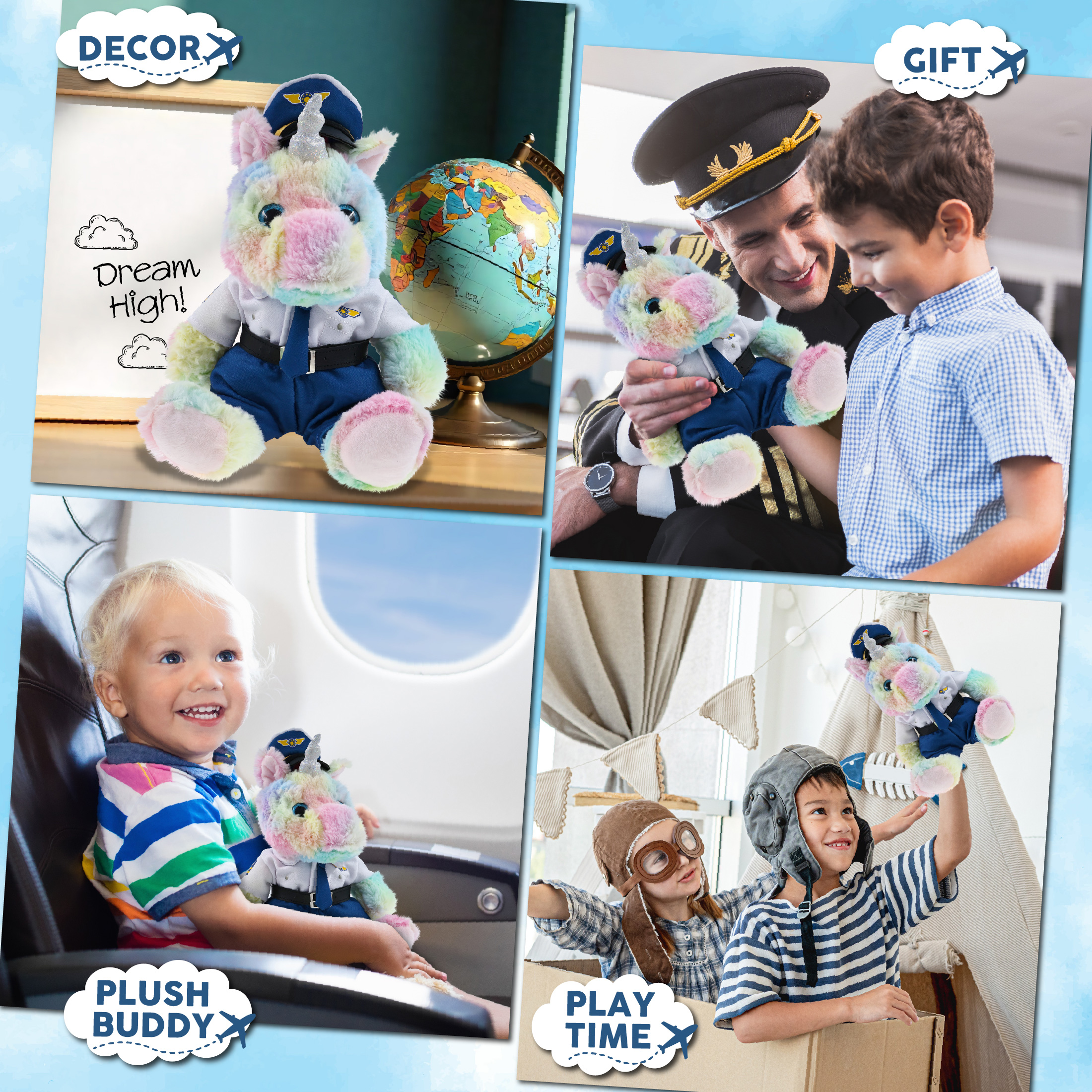 - The Pilot Stuffed Unicorn Plush is Perfect for Aviation Lovers – Everyone who loves aviation will be thrilled to have a pilot stuffed bear, whether it’s a cute stuffed animal gift or a cute teddy bear plush for aviation-themed collections. Perfect pilot fluffy stuffed animal for flight pretend play and as a pilot character toy gifts for kids who aspire to be pilots when they grow up. Recommended for ages 3 and up.