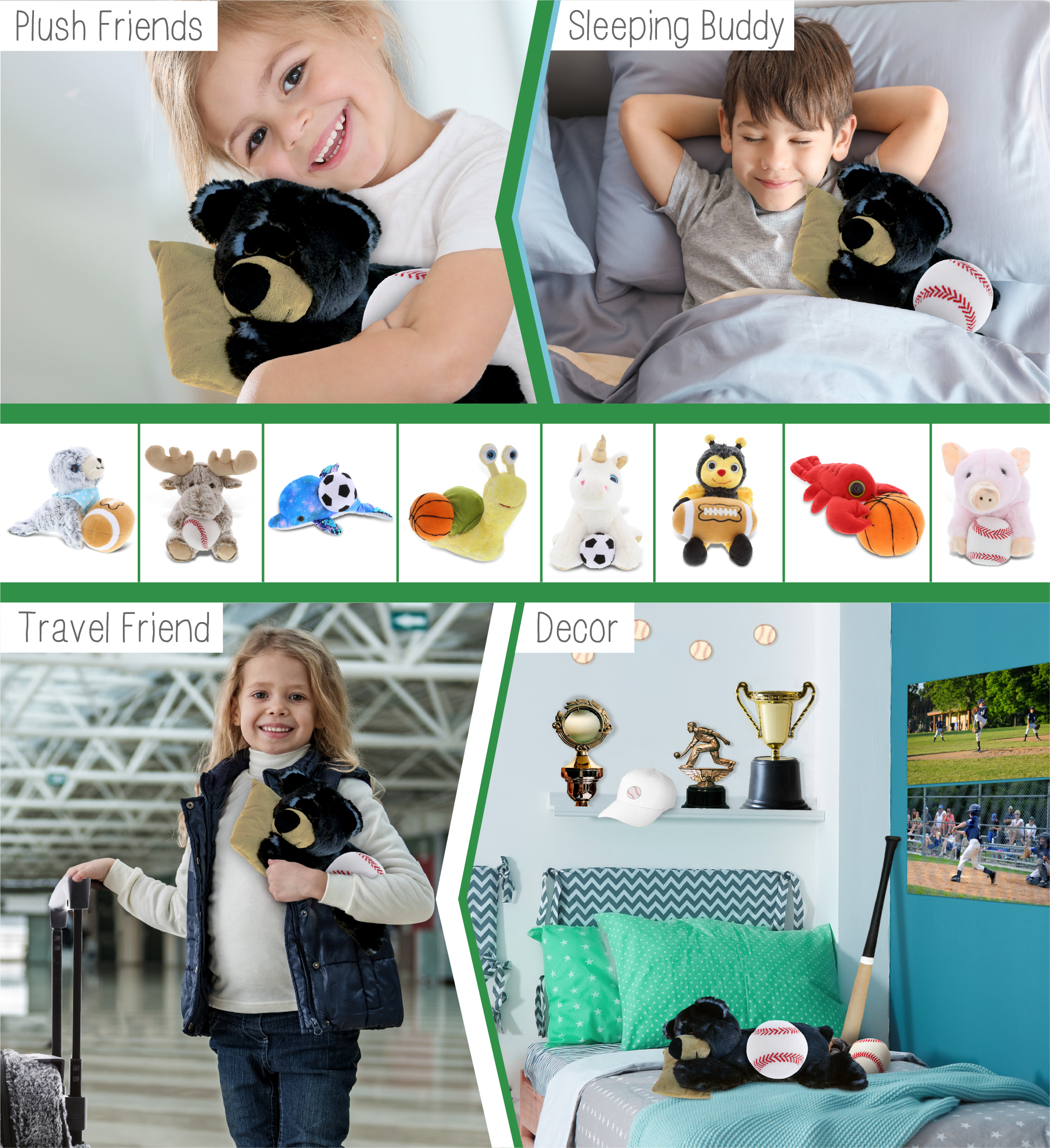 - Ideal Use for the Kids Baseball Plush and Stuffed Black Bear – The black bear baseball stuffed animal makes a great addition to your kids baseball stuff for boys collection. Great gifts for boys who love sports and plush dolls. If you’re looking for the perfect baseball gift ideas for kids, this stuffed black bear with baseball plush is the perfect choice. It’s the perfect stuffed animal baseball birthday gifts to give on any special occasion.