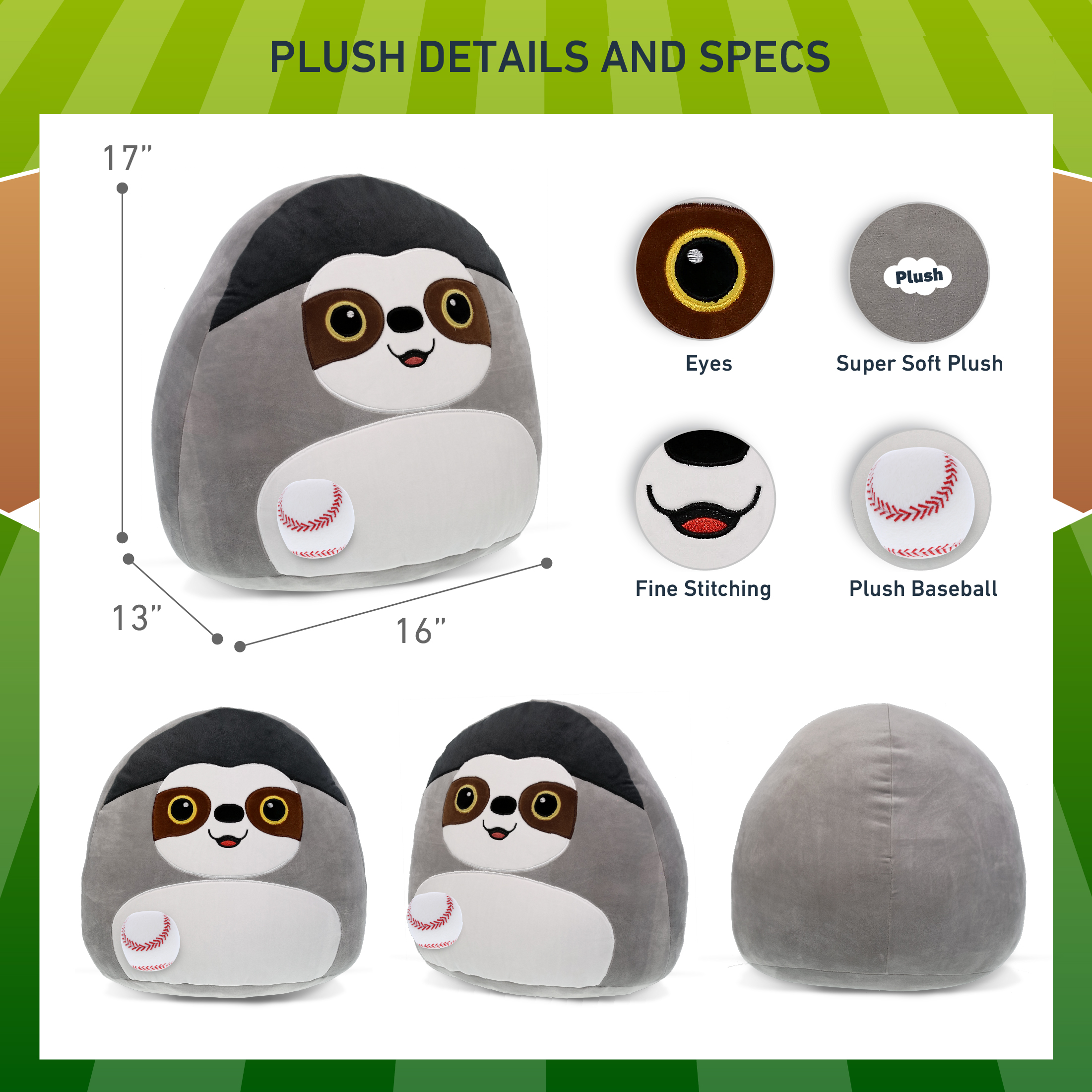 - Included with The Purchase of Sloth Plush with Baseball Ball – Includes 1 DolliBu Snug-Mooshies Sloth Super Soft Stuffed Animal with a baseball plush, decorated with realistic features of a sloth. The baseball sports ball is attached to the sloth’s body, making it perfect for cuddles. The sloth plush toy features realistic details. The sloth’s eyes make the critter so charming. The cute plush toy buddy measures 16Lx13Wx17H inches.