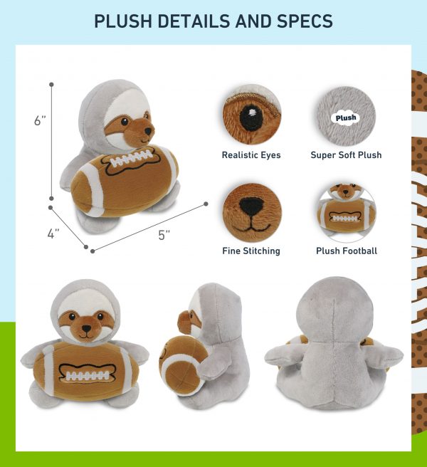 - INCLUDED WITH THE PURCHASE OF ADORABLE CUTE SLOTH PLUSH – Includes 1 DolliBu Sloth Super Soft Plush with a football plush, decorated with realistic features of cute sloth. The sloth’s body with a sports gift ball plush makes the plush perfect for cuddles. The sloth plush toy has details like its characteristic facial features. The sloth’s eyes make the critter so charming. The cute plush toy buddy measures 5Lx4Wx6H inches.