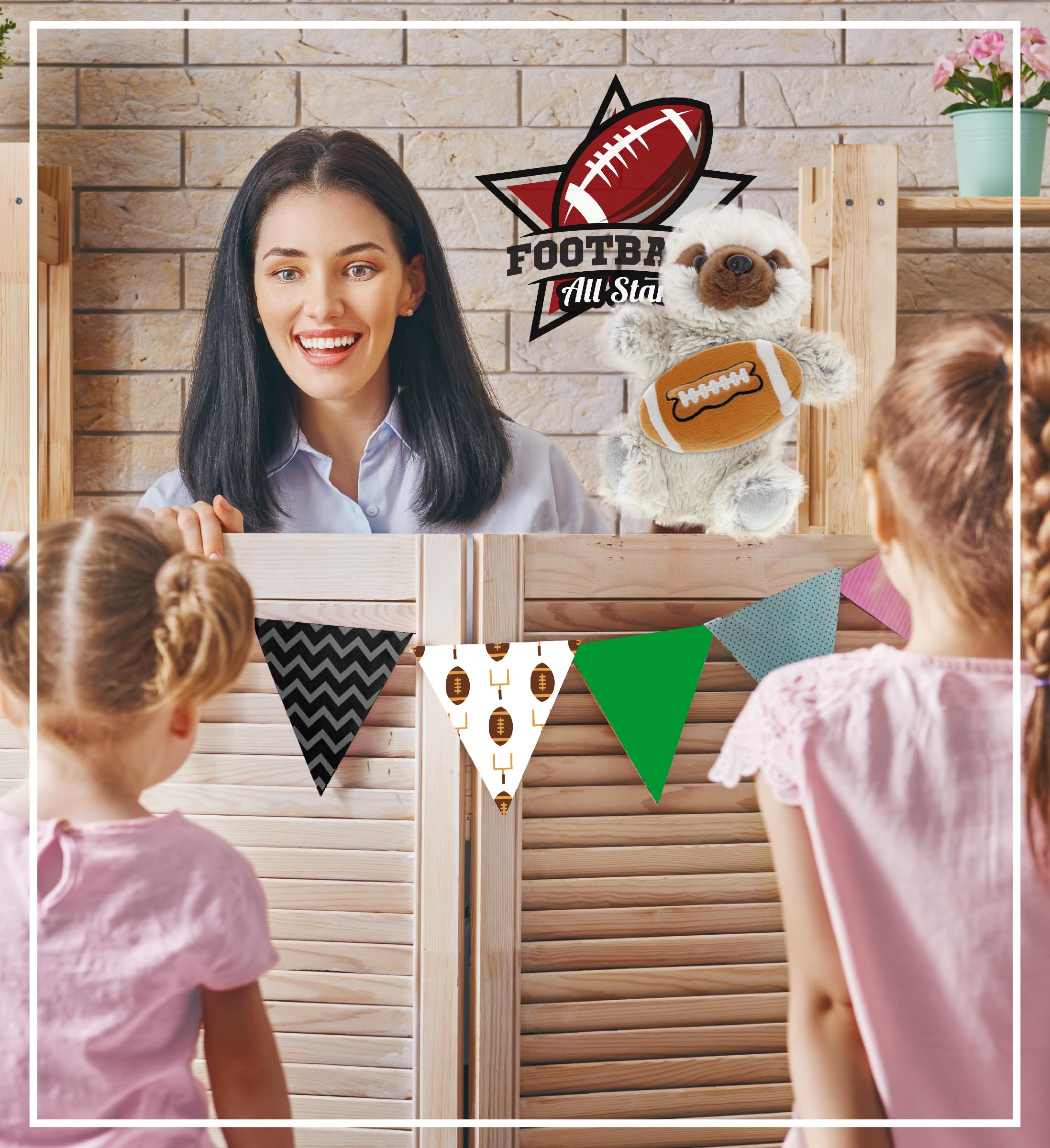 - Personalization, Customization, and Add-On Options – This Super Soft Sports Stuffed Animal Sloth Hand Puppet Plush comes customized with a football plush. You can personalize it with the name of your loved one imprinted on the item. You also have the option to add some or all of the cool add-ons to make your gift extra special: 1) Gift Bag; 2) Tissue Paper; 3) Greeting Card.