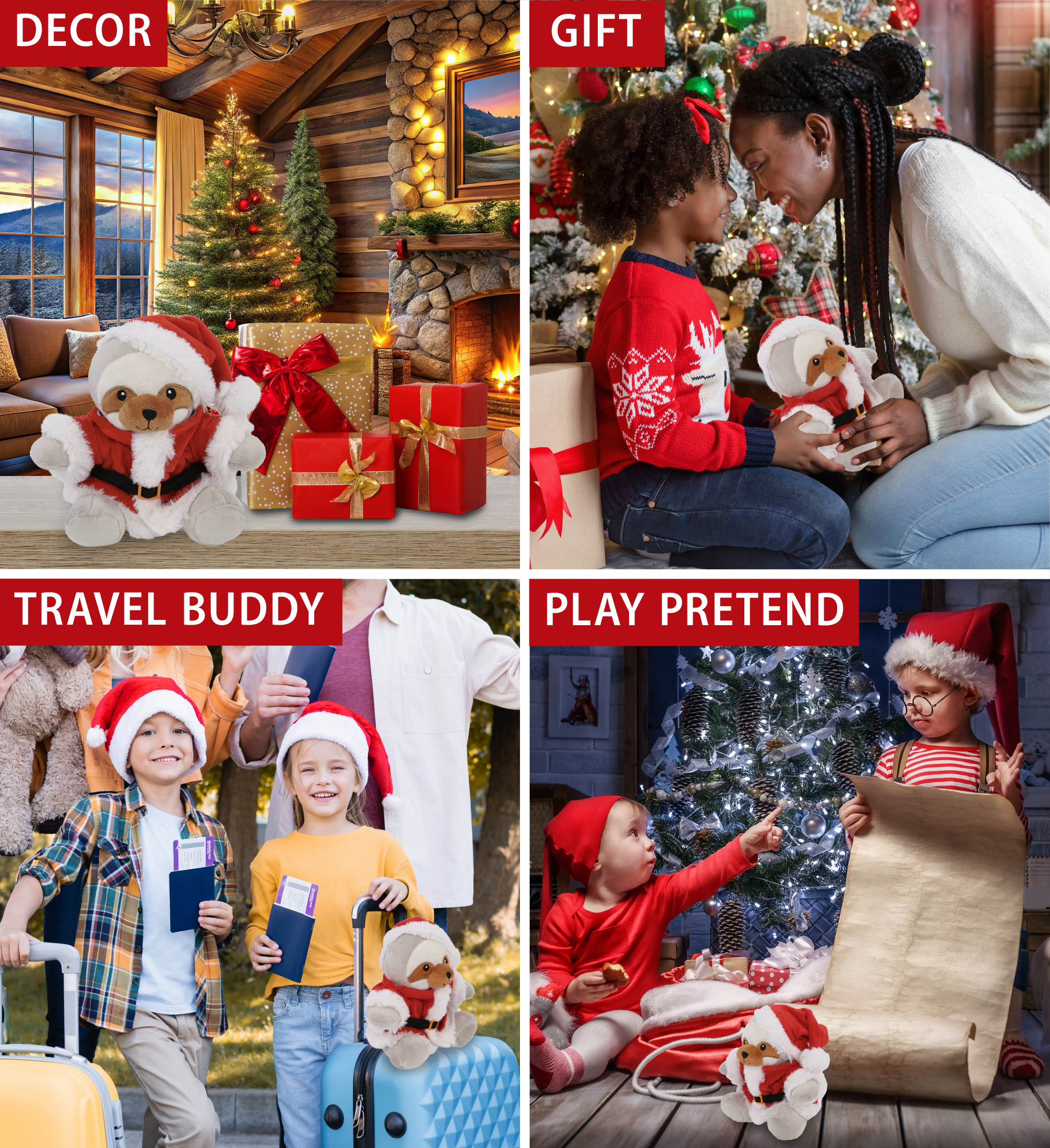 • High-Quality Super Soft Plush Toy Santa Claus – The Santa Claus Sloth doll is a plush toy, made from premium quality polyester and stuffed with soft fillings. Covered with soft, fluffy grey plush. A snuggly wildlife toy crafted with durable materials, designed to deliver a Happy Holidays message to your loved ones in an adorable way. To maintain the cleanliness of the cute sloth plush, surface wash with cold water and air dry.