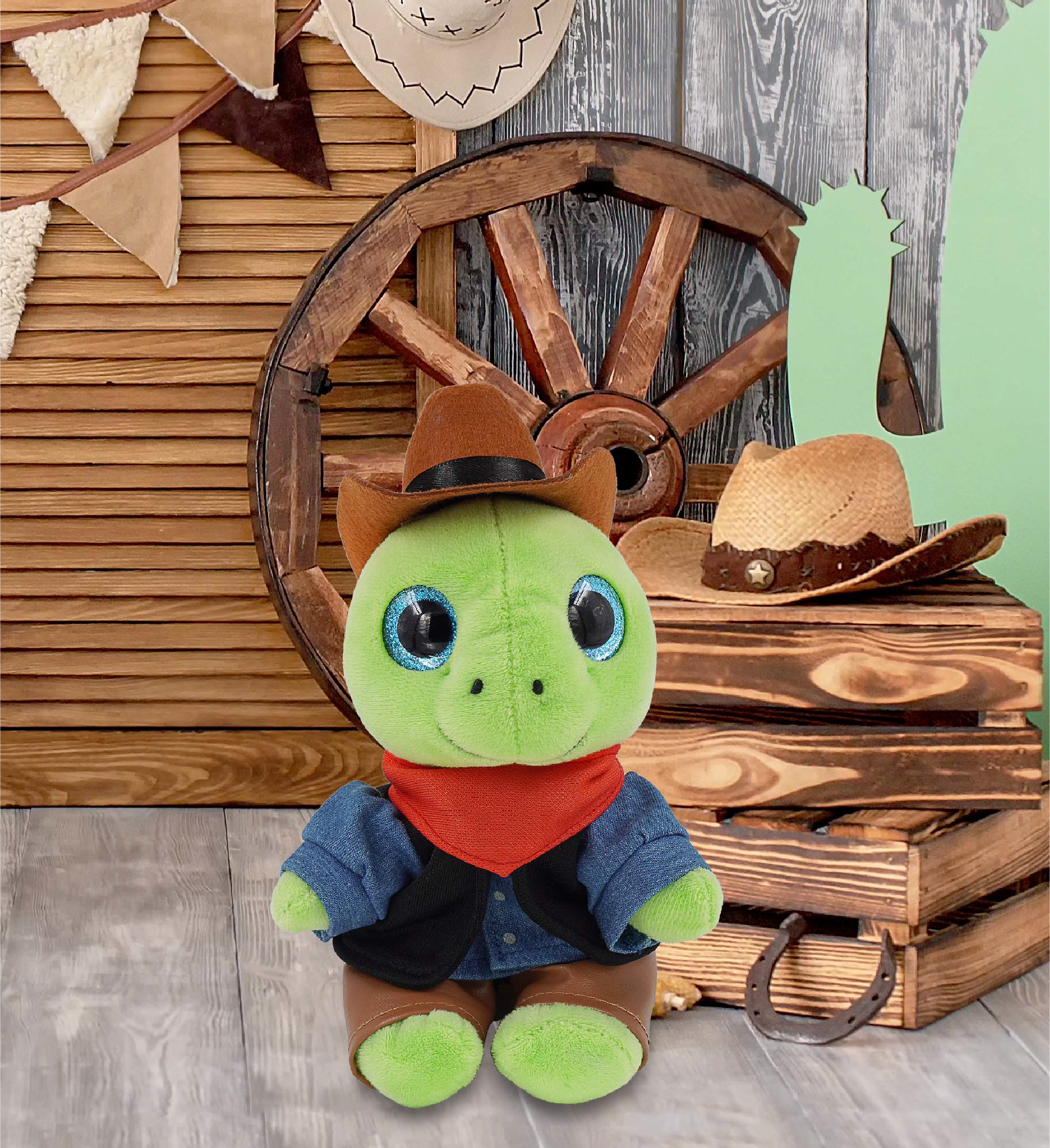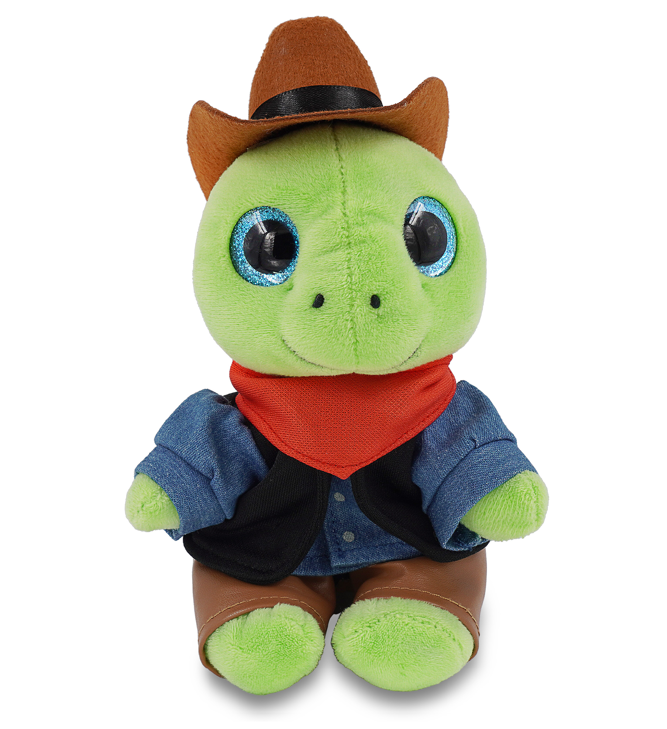 - Perfect Cowboy Stuffed Animal Cowboy Sparkle Eyes Green Sea Turtle for Those Who Love the Wild West – Everyone who loves cowboy themed gifts or stuffed animals with clothes will be thrilled with this stuffed turtle wearing cowboy clothes for small stuffed animals. Kids who love adventure plush with a mix of western vibes will have a blast imagining rodeos and exciting cowboy missions. Fun turtle gifts to give to your friends or loved ones.