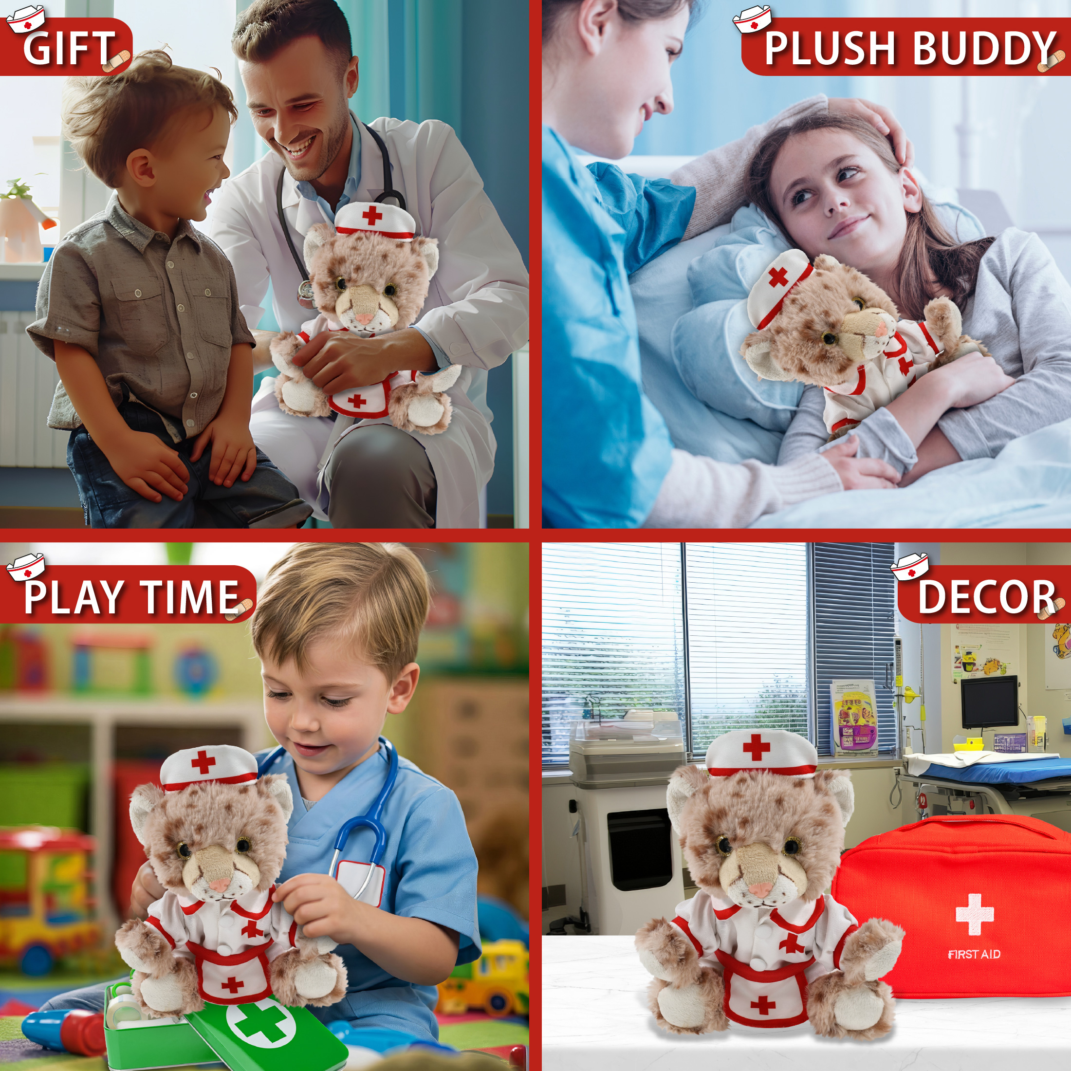 - Perfect Wild Animal Stuffed Toy Nurse Plush for Those Who Appreciate Health Care Workers – If you’re looking for a gift for nurse graduate, a get well teddy bear for your sick friend, the stuffed nurse cheetah brings a comforting, playful vibe to any occasion. Ideal hospital gifts for children to make them feel safe or as medical toys for kids to inspire them at a young age. The perfect stuffed animal for nurses and cool storytelling.