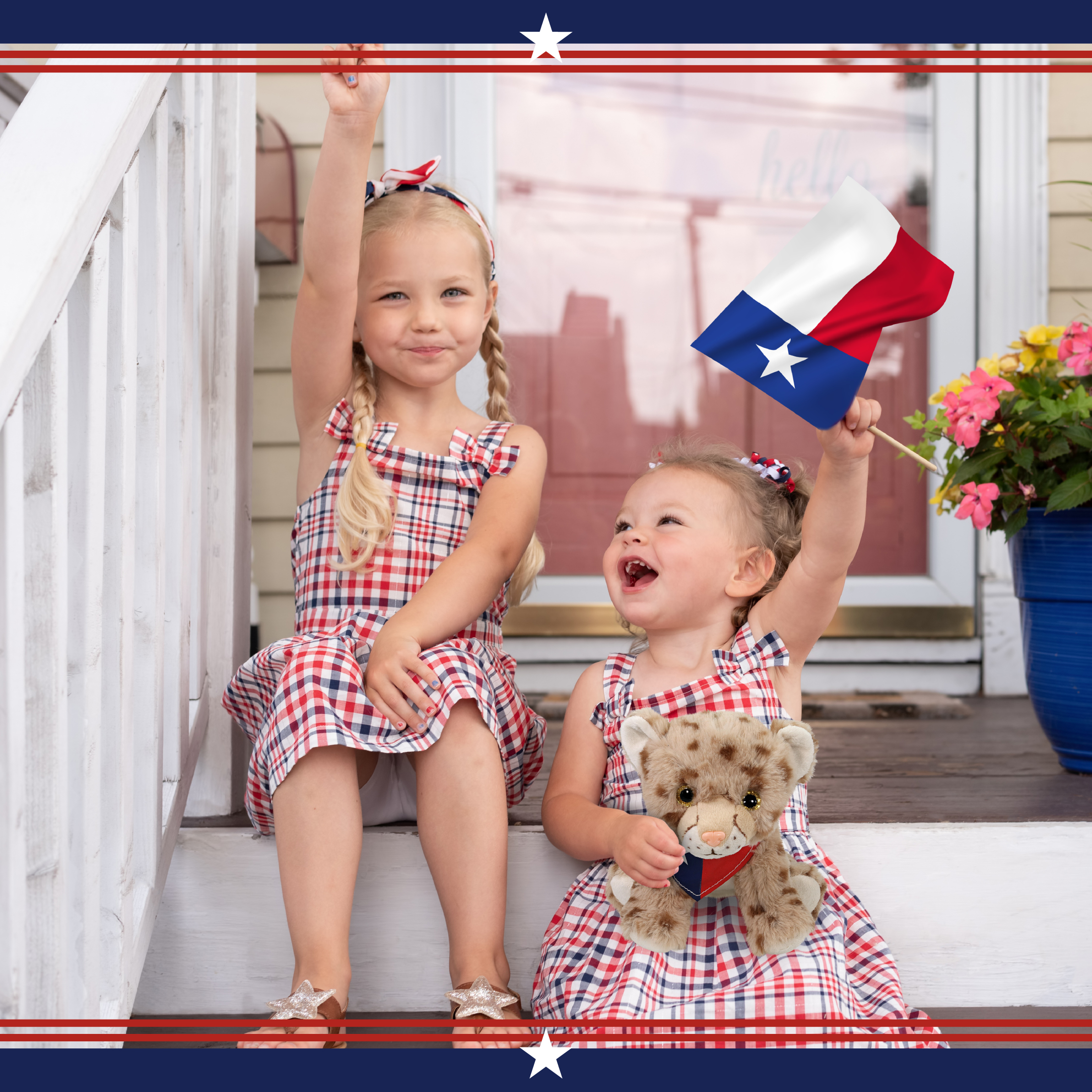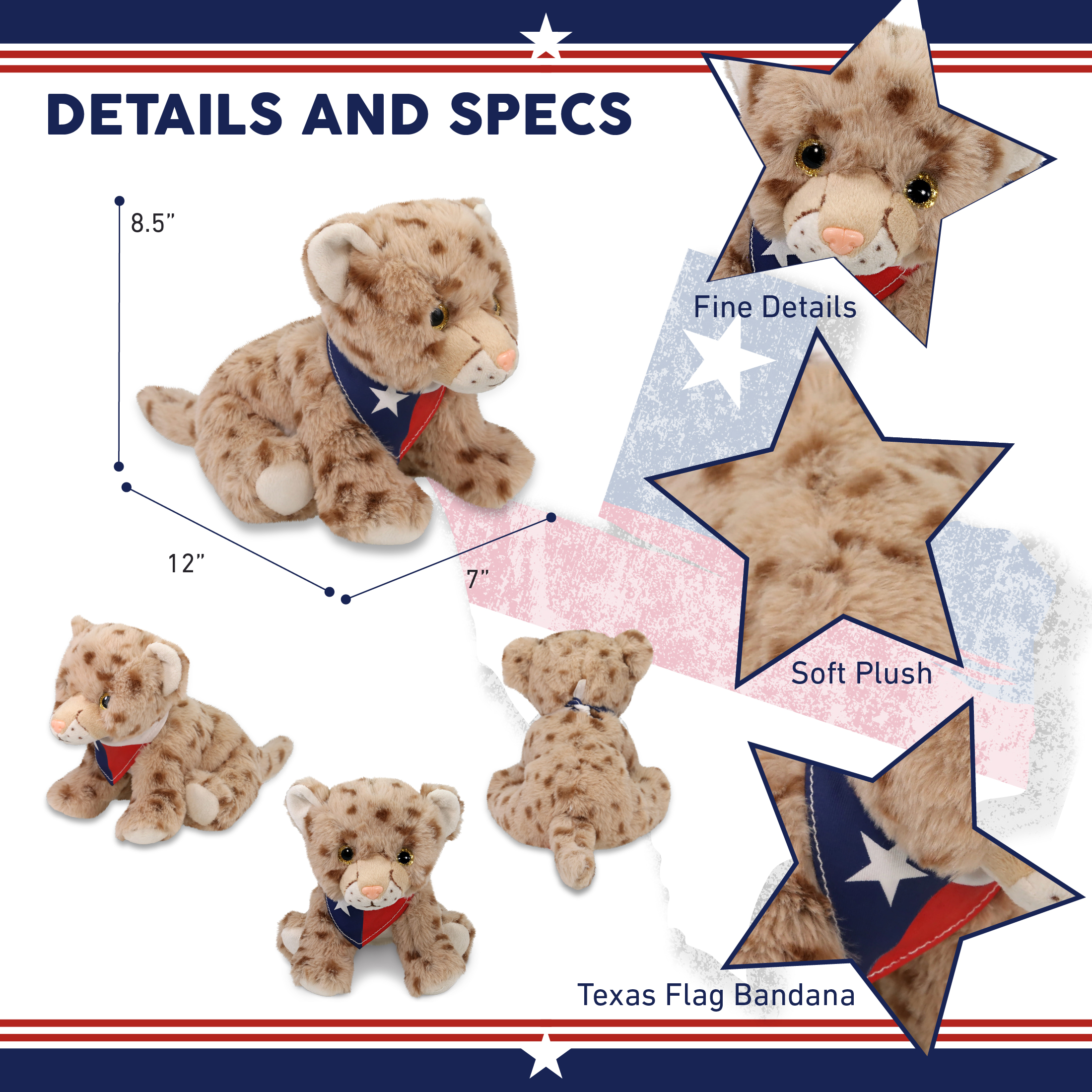 - Includes 1 DolliBu Squat Cheetah Doll with Texas Flag Neck Scarf – This soft and cuddly teddy bear plush comes with a removable red, blue, and white Texas flag bandana, giving it cowboy-Texan vibes. The cheetah’s western cowboy accessories make it a standout addition to any cowboy toys collection, and it pairs well with other Texas themed gifts. This cheetah plush doll measures 12.5Lx8.5Wx7H inches. Best for kids ages 0 and up.