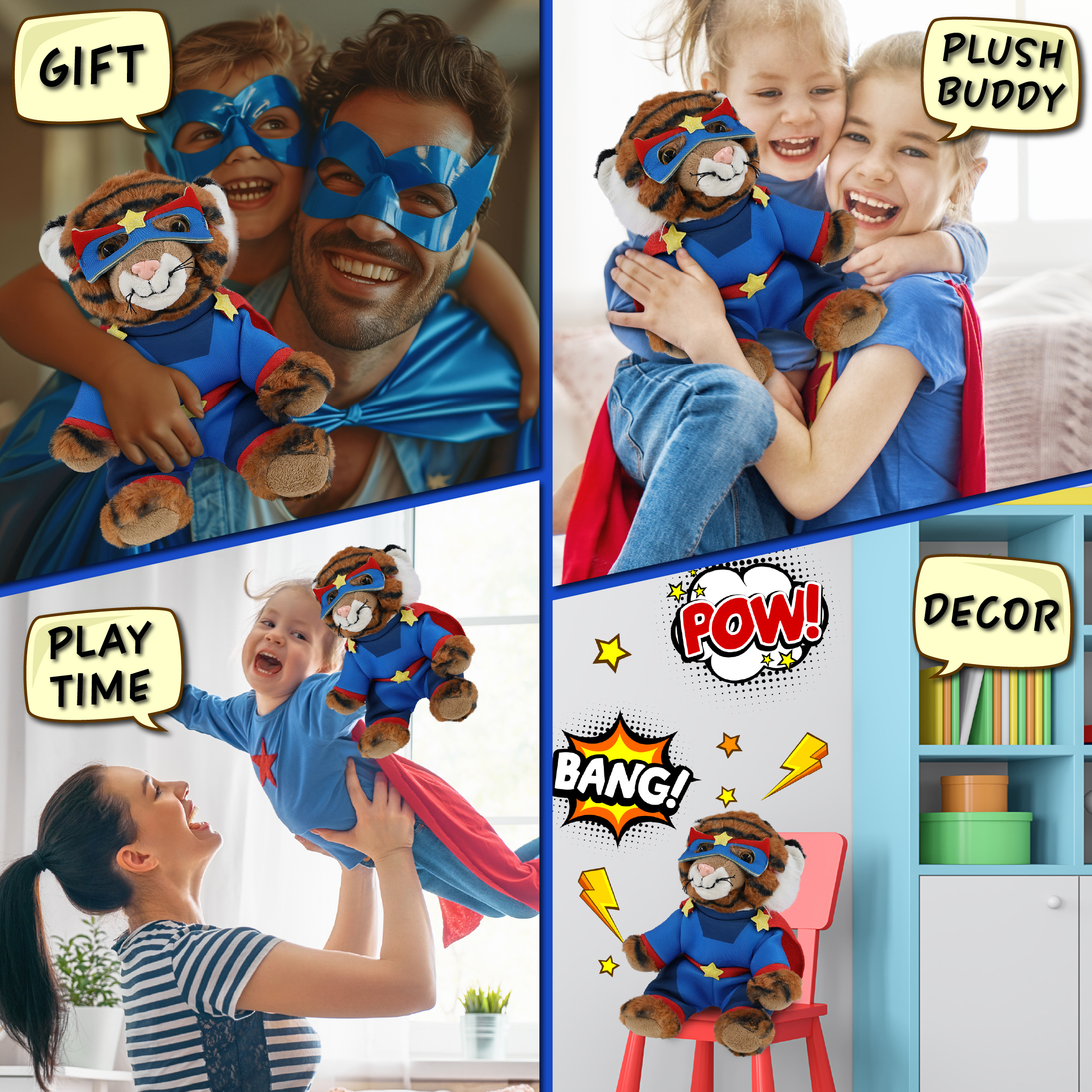 - Perfect for Everyone Who Loves Superheroes – Everyone who loves customizable stuffed animal toys will be thrilled to have a super hero stuffed tiger. Whether it’s a cute stuffed animal gift or a superhero teddy for a super hero themed room, this plush makes a thoughtful surprise. Ideal for birthdays, Halloween, or everyday fun. Perfect to bring along on pretend-play save-the-day adventures.