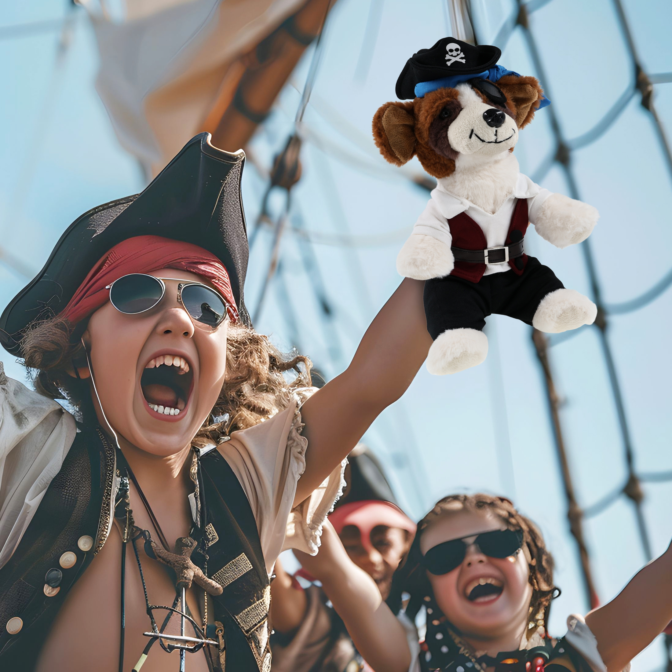 Whether you’re into pirate stuff or stuffed animal outfits, this St. Bernard dog plush brings a fun twist to your pirate toy collection. Great pirate gifts for kids or those who love pirate toys for kids, with cute stuffed animal clothing or Halloween themed plush toys. Add it to your stuffed animal clothes and accessories; share accessories with similar plush dolls. The dog pirate plush features a fun mix of pirate vibes and classic dog toy style, making it both quirky and lovable. It comes with a complete pirate outfit set, featuring a hat with skull print and a blue bandana, a red vest, black pants, brown belt, white shirt, and an eye patch, making your pirate doll a complete pirate, ready for some wild animal sea pirate adventure. The dog figure stuffed toy comes dressed in full pirate teddy clothes, complete with pirate hat, pirate vest, pirate shirt, pants, belt, and pirate mask. Make your doll special by adding a personalized name, which we will imprint onto the plush. You can also customize your stuffed animal by adding any of our add-ons to create the perfect gift: 1) Gift Bag 2) Tissue Paper 3) Greeting Card. The pirate dog plush toy is crafted with premium-quality, soft, and durable material. Designed with fine stitching and details, the plush features removable pirate accessories for plush toys, allowing kids to enjoy mix-and-match role play. Perfectly built to withstand everyday cuddles. Keep the St. Bernard dog plush with pirate dress up set clean by washing it with cold soapy water and allowing it to air dry. Includes 1 DolliBu St. Bernard Dog Stuffed Toy with Pirate Outfit. The super soft plush dog toy wears pirate clothing featuring a pirate vest, belt, shirt, pants, and pirate hat. Whether you’re collecting plush dogs or hunting for pirate stuff for kids, this cute plush is the perfect combo of silly plush fun and dress-up adventure. This cute pirate stuffed animal dog measures approximately 7.5Lx7Wx8H inches and is best for kids ages 3 and up.