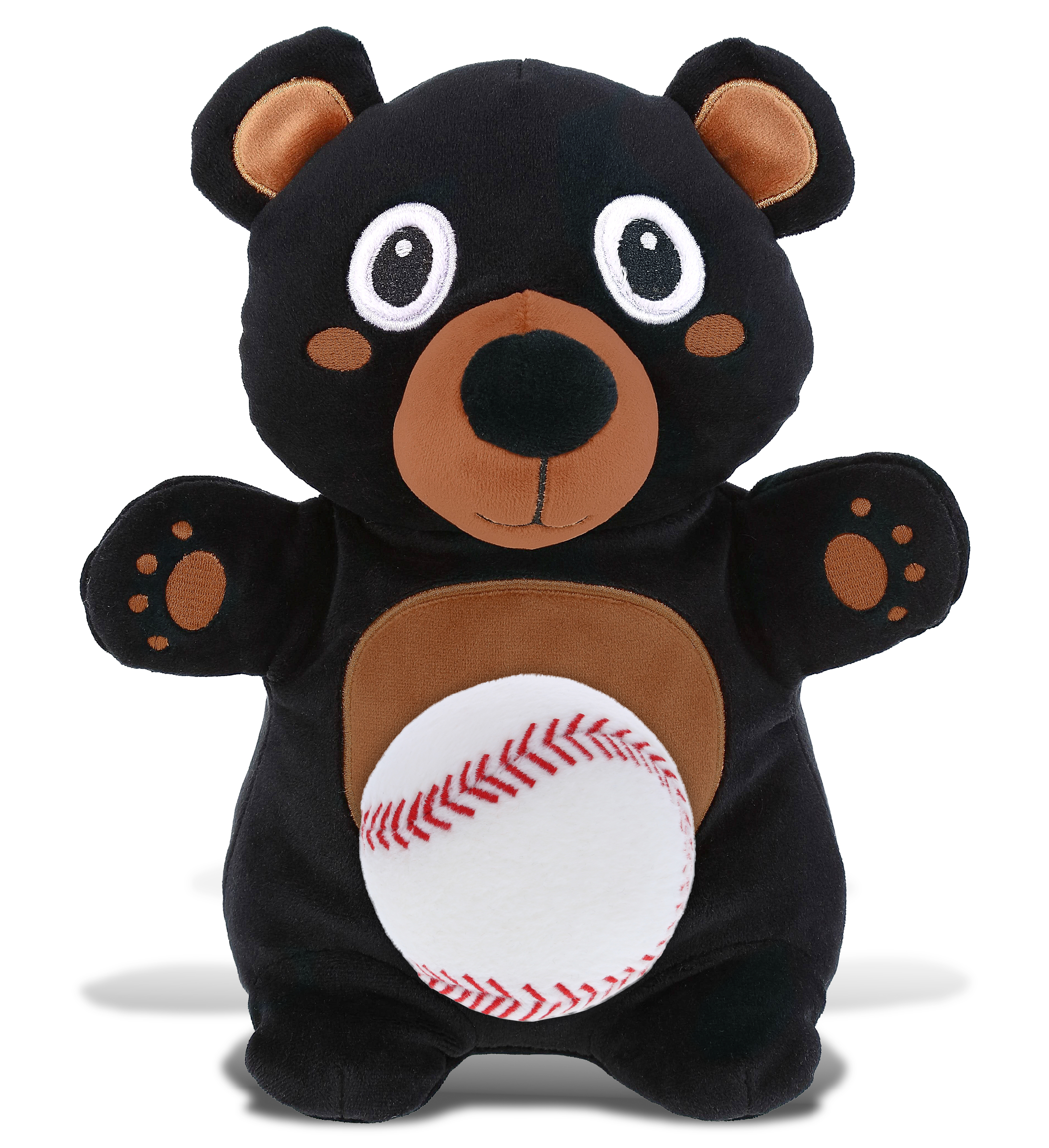 - The Black Bear with Baseball Plush Toy Is for Everyone Who Loves Baseball Toys – Anyone will love receiving a cute stuffed toy with cool baseball plush. The girls and boys baseball toy and black bear will be loved by all ages, making perfect gifts for boys who love baseball. Snug-Mooshies Standing Black Bear stuffed animal are timeless gifts for baseball players, as baseball fan gifts, and kids who love decorating their rooms with baseball stuff.