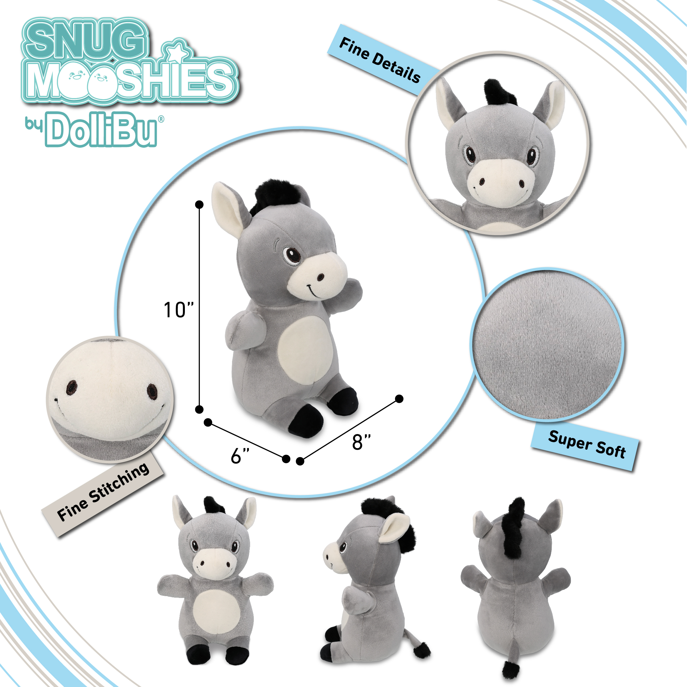 DolliBu Snug-Mooshies Standing Donkey Stuffed Animal Plush Toy – Super Squishy Soft Animal Friend for Girls and Boys, Medium Huggable Cute Plush for Kids Play, Cuddling, Decoration – 10 Inches