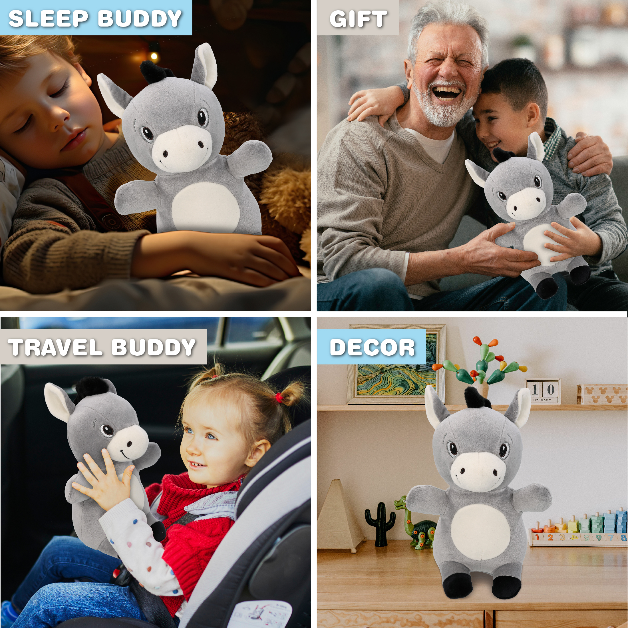 • The Cute Donkey Soft Plush Comes with Unique Design You Will Love – Embrace the whimsical charm of the Snug-Mooshies Standing Donkey plush animal designed with soft squishy-like texture and smiling embroidered face. The perfect boys and girls plush stuffed animal for cuddling, decorating and adding a touch of cuteness to any space. The super soft toy Donkey brings joy to everyone, offering fun sensory soft plush comforting experience.