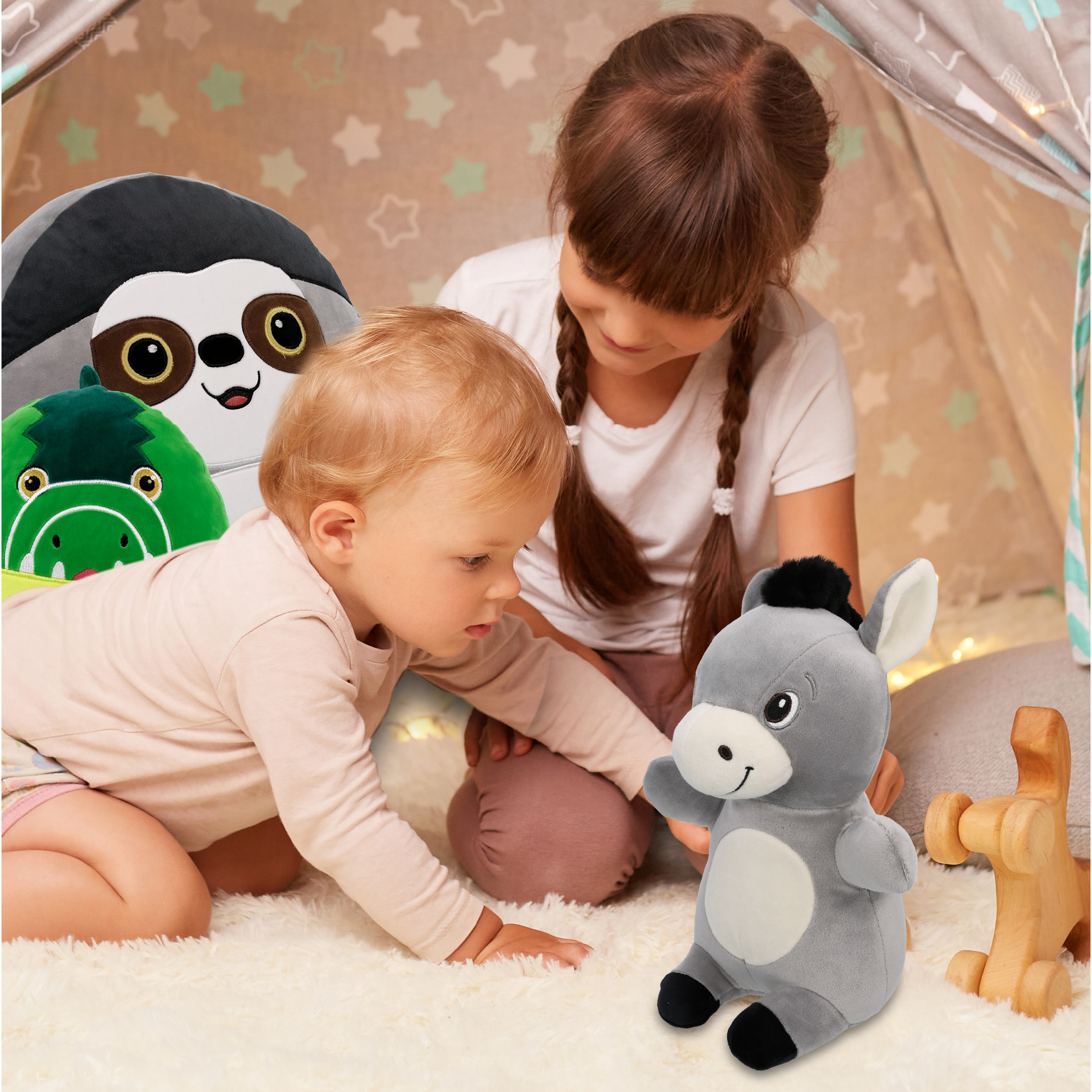 • The Soft Plush Donkey Toy Is for Everyone Who Loves Squishy Stuffed Animals – Every animal lover will be thrilled to hug, cuddle and squeeze the Snug-Mooshies Standing Donkey. Whether you are looking for a cute animal plush friend for yourself or to gift, this stuffed animal donkey is perfect. The medium squishy stuffed animal makes an excellent plush toy stuffed animal for all ages as a comforting cuddle stuffed animal for kids and adults.