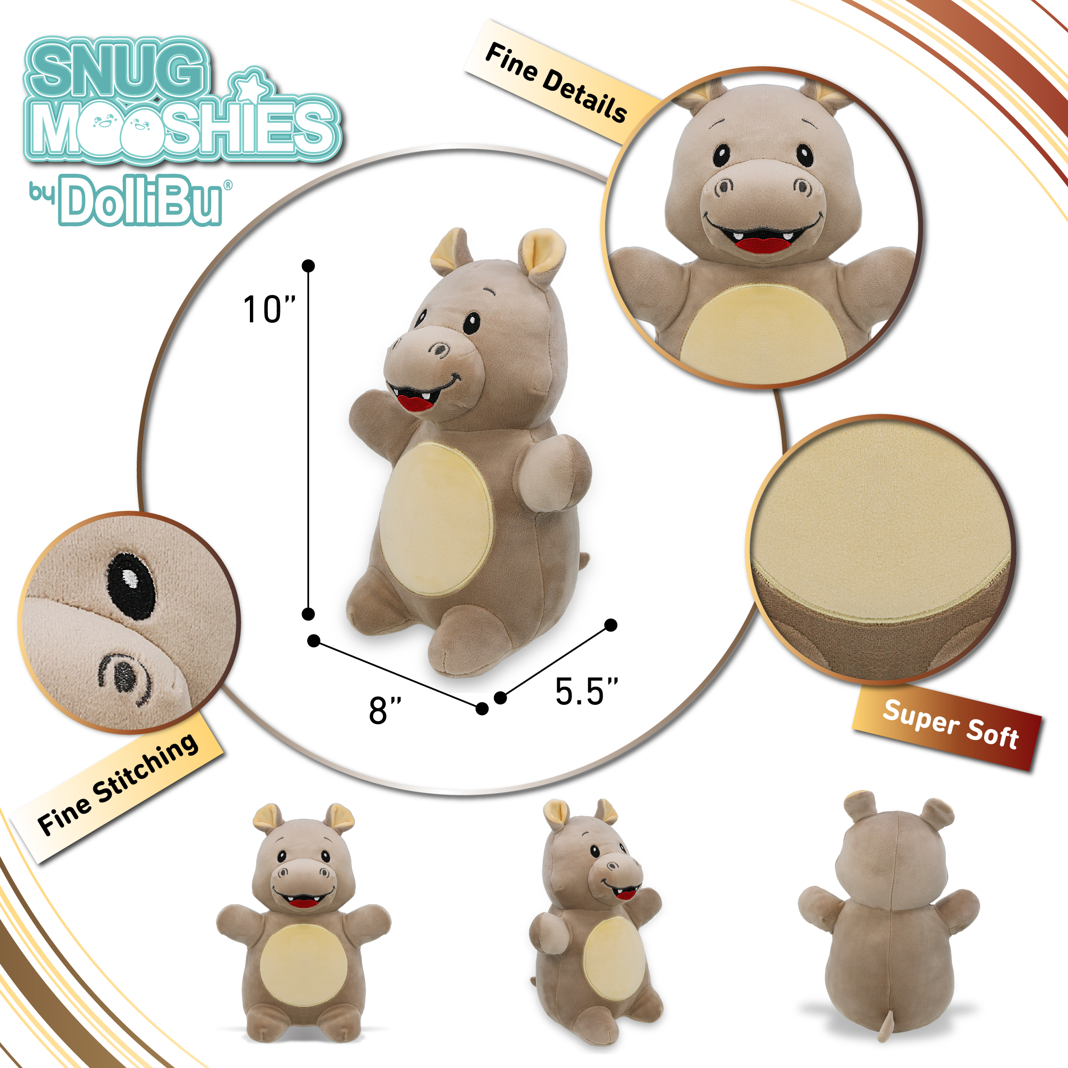 - Includes 1 DolliBu Snug Mooshies Standing Hippo Stuffed Animal – You will receive one Snug Mooshies Standing Hippo Plush Toy. This wildlife animal plush comes with a soft and squishy texture. Features embroidered facial details, including eyes and mouth, inspired by real wildlife animals like a hippopotamus. The small size of this soft hippo plush makes it suitable for hugging, squeezing, and display. Designed for everyday handling and use.