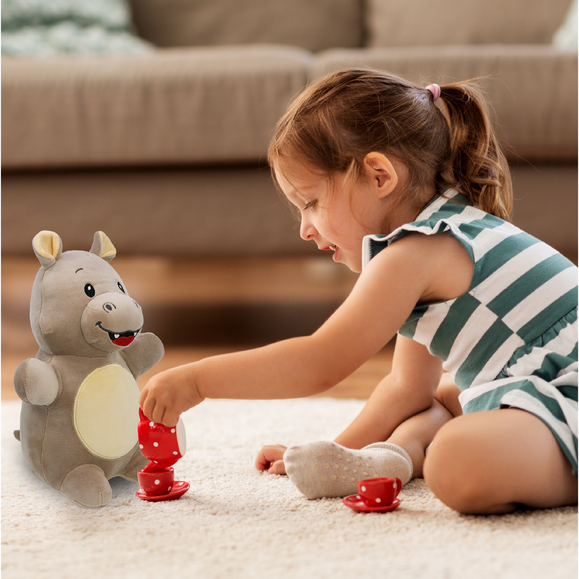 - Features a Soft Plush Hippo Stuffed Animal – The Snug Mooshies Standing Hippopotamus Plush is structured with a rounded body shape and a soft plush exterior. Features embroidered facial details with a hippo-inspired look. The squishy filling of this stuffed hippopotamus provides a gentle, cushion-like structure. The compact form makes it easy to hold and display along other wild animal toys.