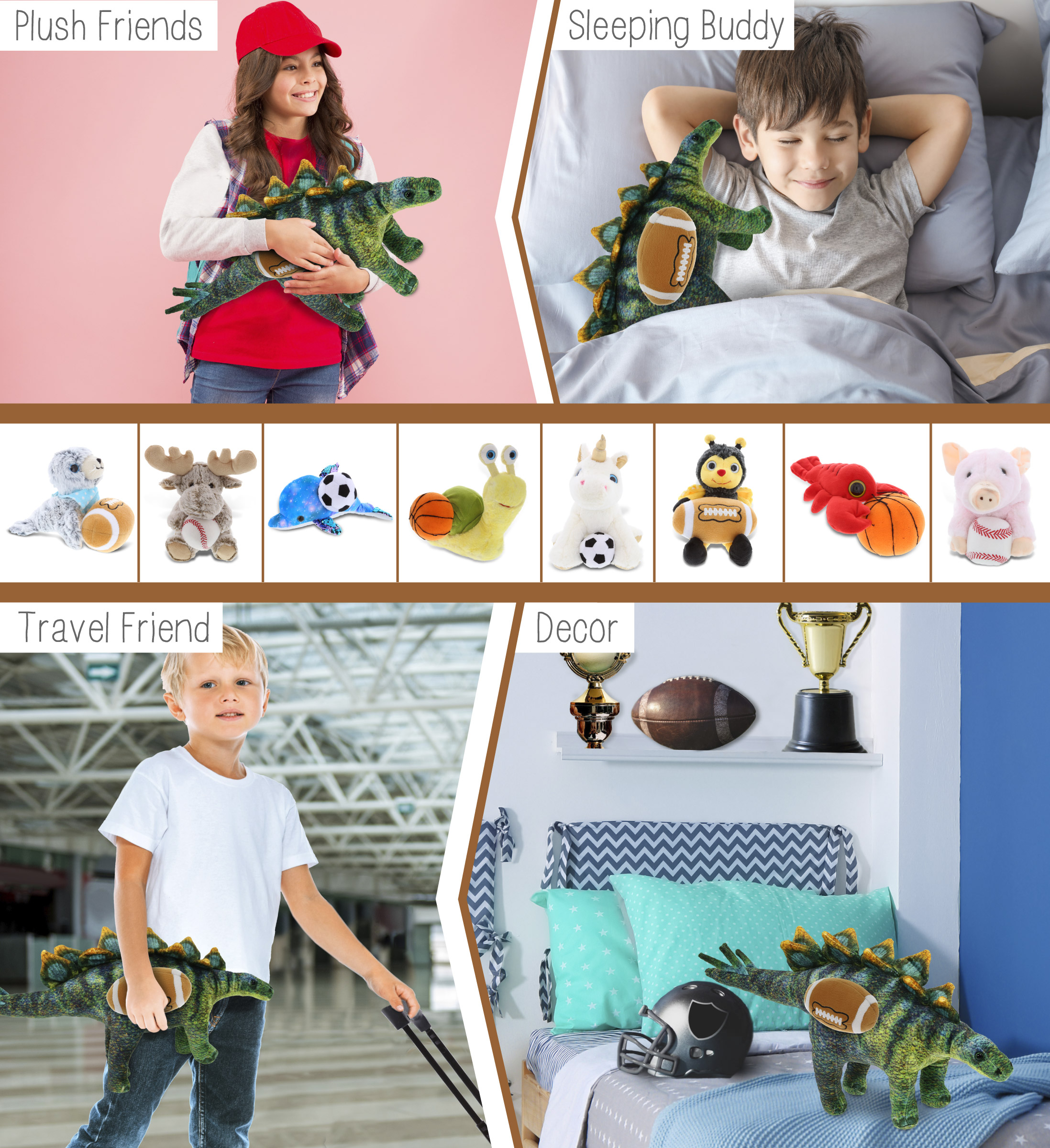 - Included with the Purchase of Adorable Cute Stegosaurus Plush – Includes 1 DolliBu Super Soft Wild Collection Stegosaurus Dinosaur with a football plush, decorated with realistic features of a cute Stegosaurus. The body with a sports gift ball plush makes the plush perfect for cuddles. The plush toy features its iconic spikes. The dino’s eyes make the critter so charming. The cute Stegosaurus plush toy buddy measures 18.5.5Lx4.5Wx9H inches.