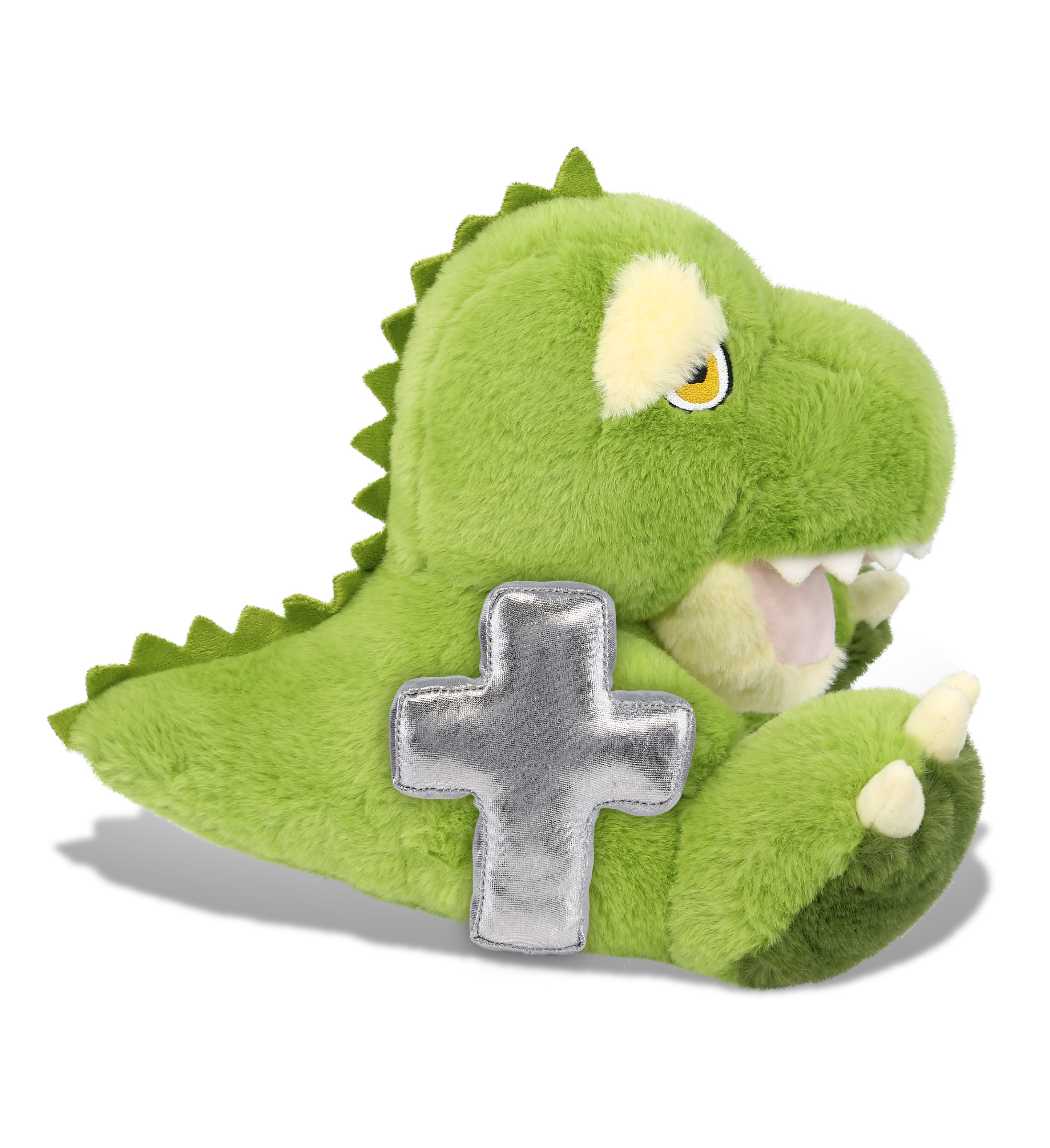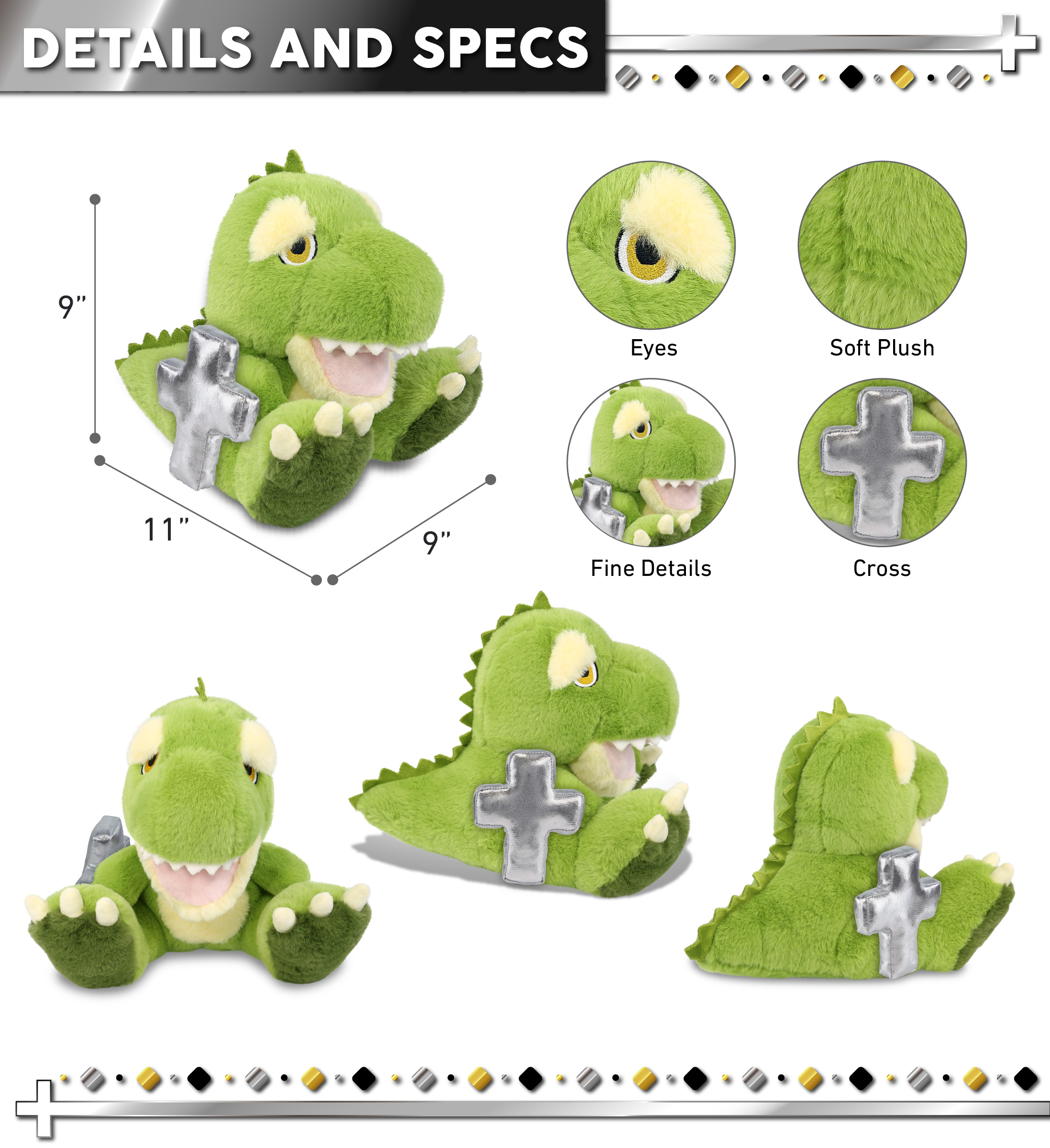 - The T-Rex Silver Cross Plush Bear Is for Everyone Who Loves Soft Stuffed Animals – The Eco-Friendly T-Rex Dinosaur stuffed animal with cross for baby girl and boy makes for sweet baptism gifts for girl and boy, as well as christening gifts. Celebrate your faith and share the passion with your loved ones by giving them cuddly small stuffed animals for kids. Metallic silver cross plush can also be presented as a healing or feel better teddy bear.