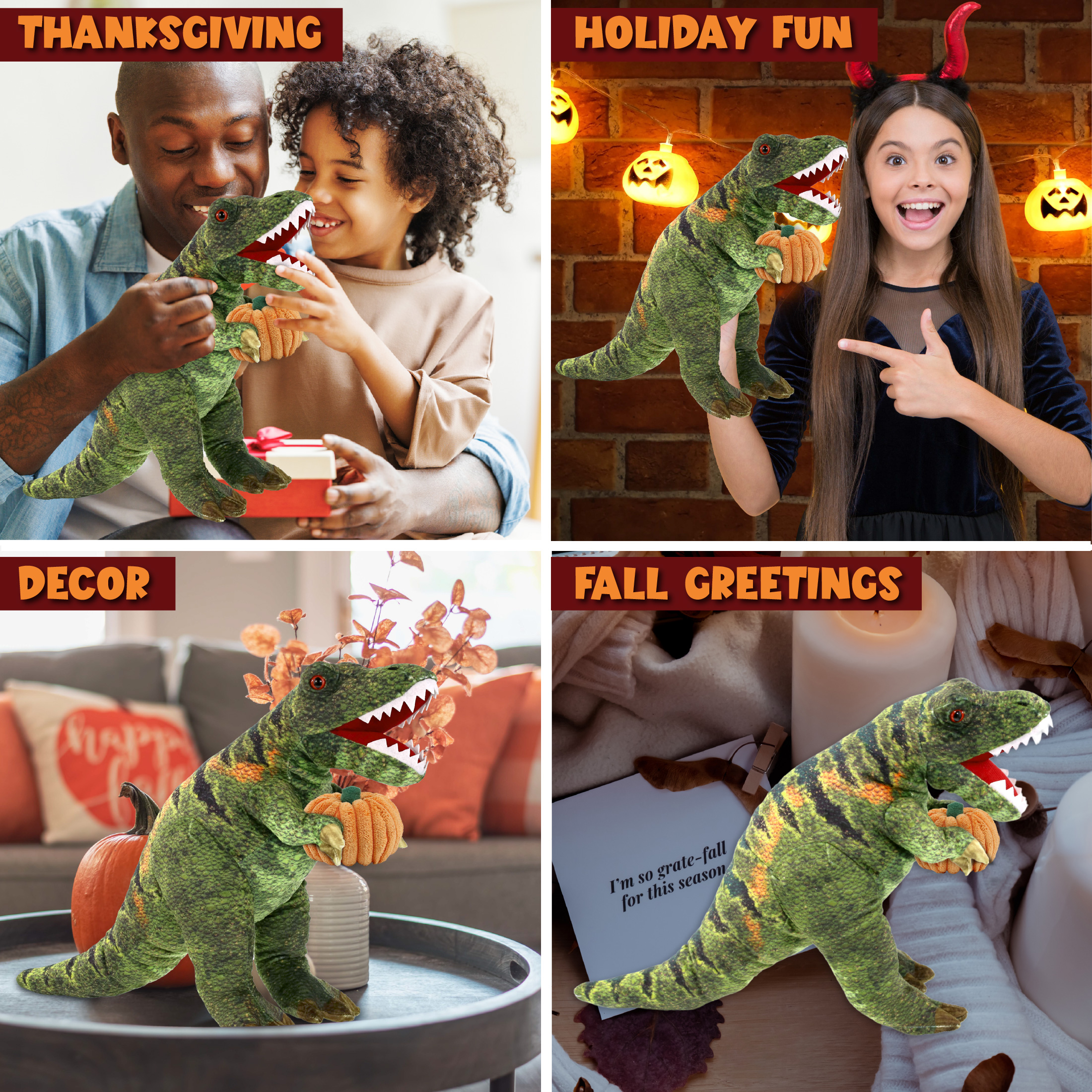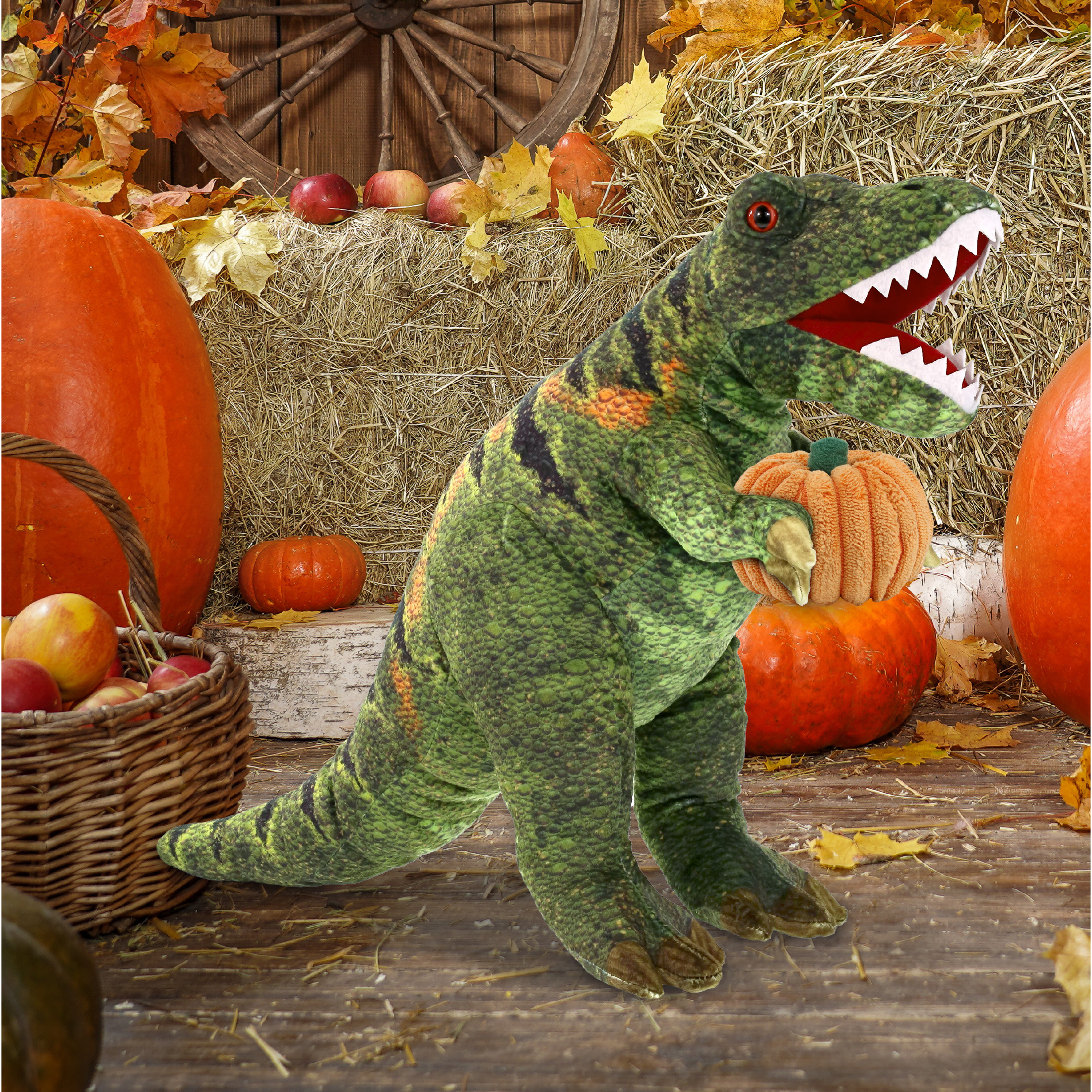 - Included in the Purchase of the Pumpkin Stuffed Dinosaur Plush – Includes 1 DolliBu Wild Collection Tyrannosaurus Rex Dinosaur Stuffed Animal Plush to celebrate the fall season. The T-Rex features realistic details and an orange plush pumpkin decor toy on the plush dinosaur animals chest. Decorated with green plush, realistic design, and soft fabric, it is perfect for cuddles and snuggles. The dino plush animal measures 16Lx7Wx16H inches.