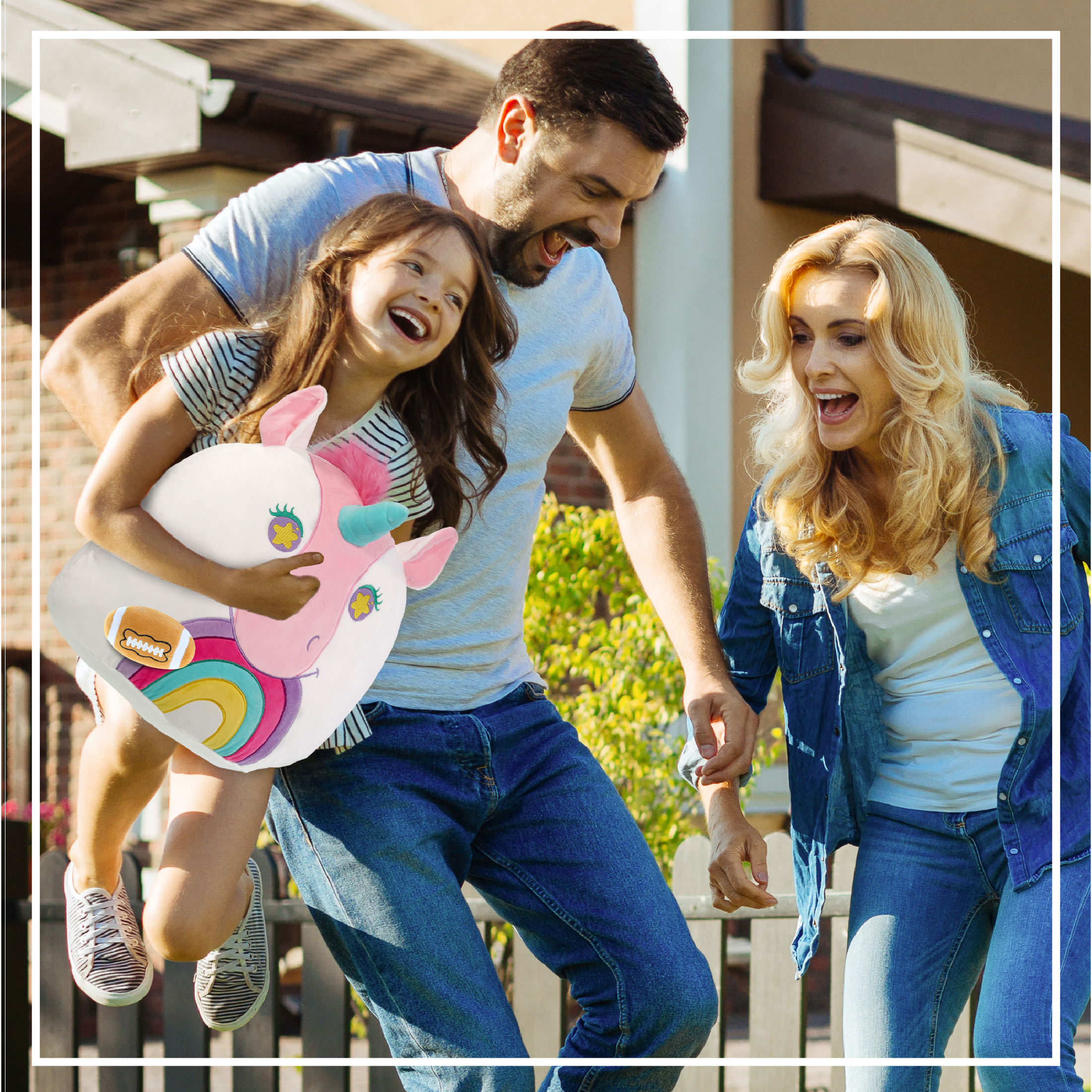 - Included with the Purchase of Adorable Cute Unicorn Plush – Includes 1 DolliBu Super Soft Snug-Mooshies Unicorn with a football plush, decorated with realistic features of a cute unicorn. The body with a sports gift ball plush makes the plush perfect for cuddles. The unicorn plush toy features its iconic horn. The unicorn’s eyes make the critter so charming. The cute unicorn plush toy buddy measures 16Lx13Wx17H inches.
