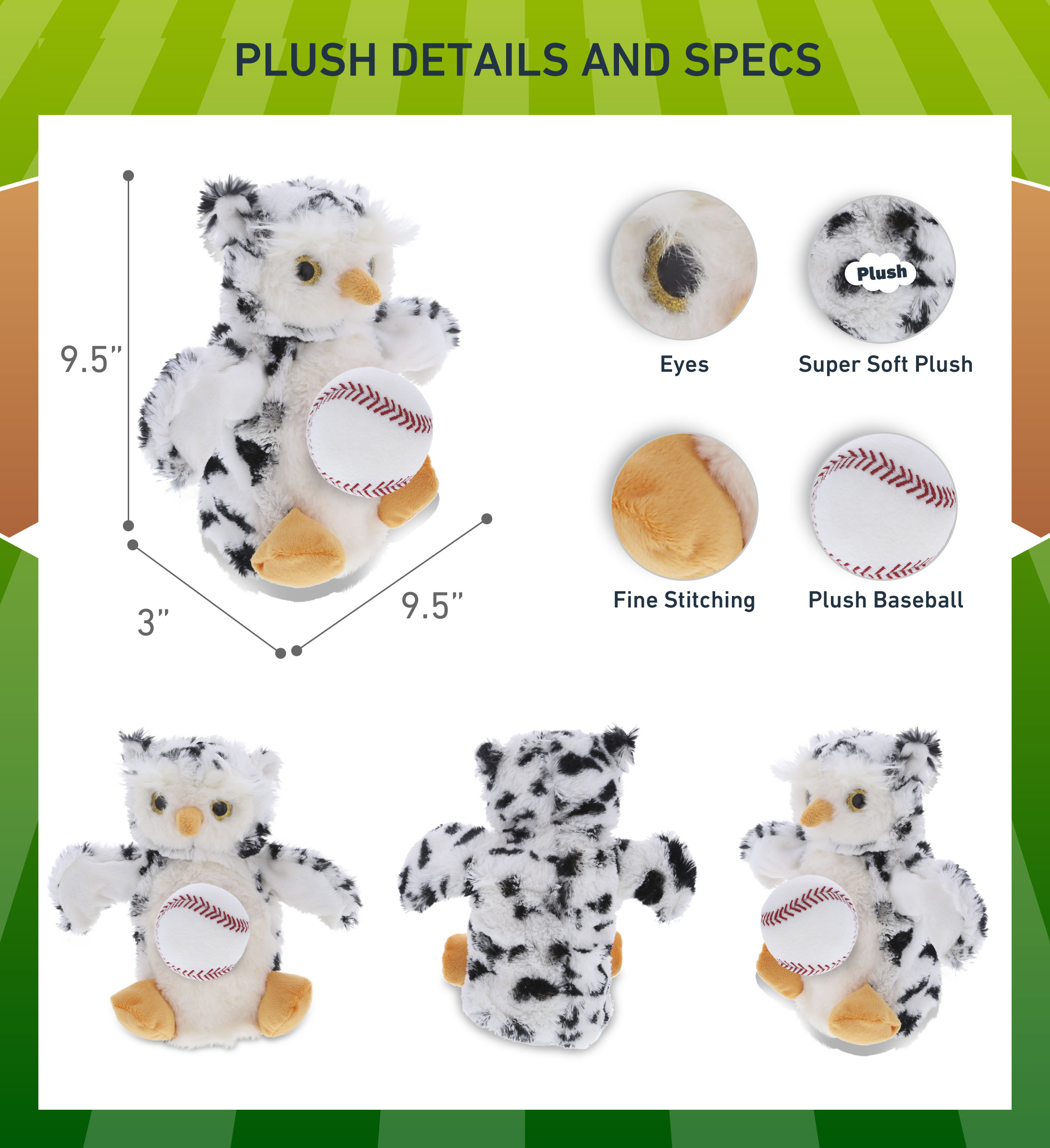 - Personalization, Customization, and Add-On Options – The Super Soft Sports Stuffed Animal White Owl Plush Hand Puppet comes customized with a small baseball plush. You can personalize your stuffed animal owl with the name of your loved one which we will imprint on the item. You also have the option to add some or all of the cool add-ons to make your gift extra special: 1) Gift Bag; 2) Tissue Paper; 3) Greeting Card.