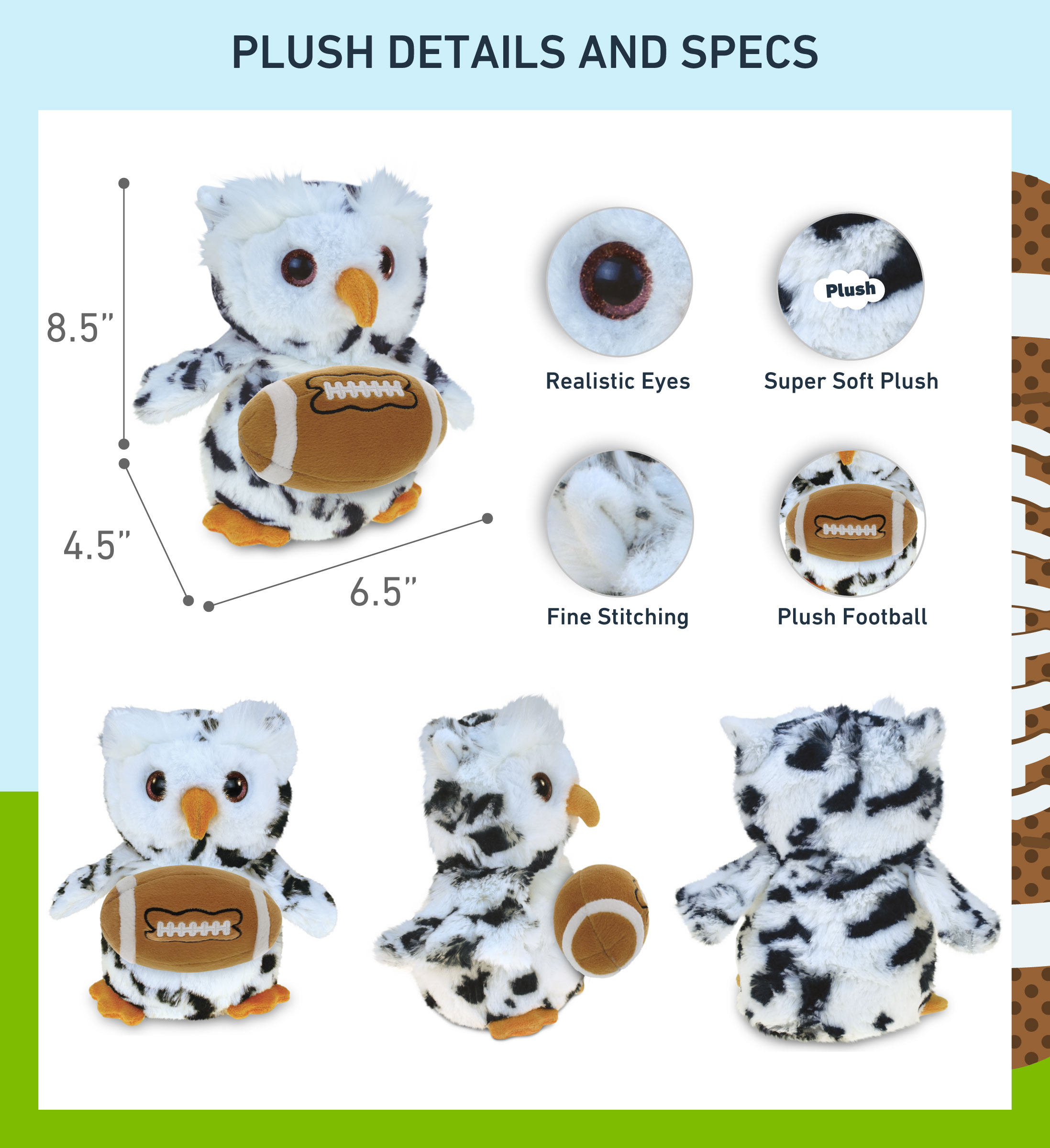 - INCLUDED WITH THE PURCHASE OF ADORABLE CUTE OWL BIRD PLUSH – Includes 1 DolliBu White Owl Bird Super Soft Plush with a football plush, decorated with realistic features of cute owl bird. The owl’s body with a sports gift ball plush makes the plush perfect for cuddles. The owl bird plush toy features details like its characteristic big eyes. The owl’s eyes make the critter so charming. The cute plush toy buddy measures 4.5Lx6Wx8.5H inches.
