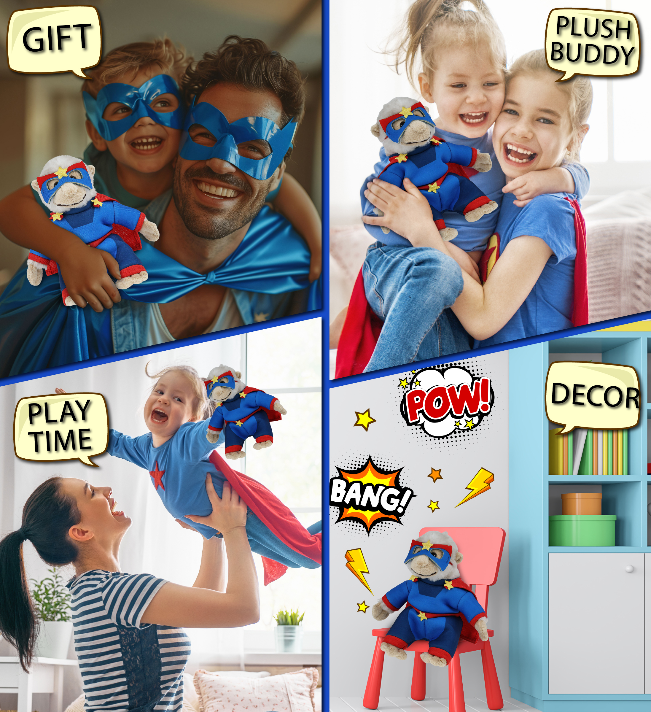 - Made of High-Quality Soft Polyester – The Superhero Stuffed Animal Clothes outfit and the monkey plush doll are made with super-soft, durable, premium-quality polyester materials. This cute dress up plush monkey is designed for everyday hugs and creative dress-up fun, blending superhero style with silly animal charm. The superhero monkey plush toy outfit includes a hook and loop tape fastener on the back of the suit for quick and easy dressing.
