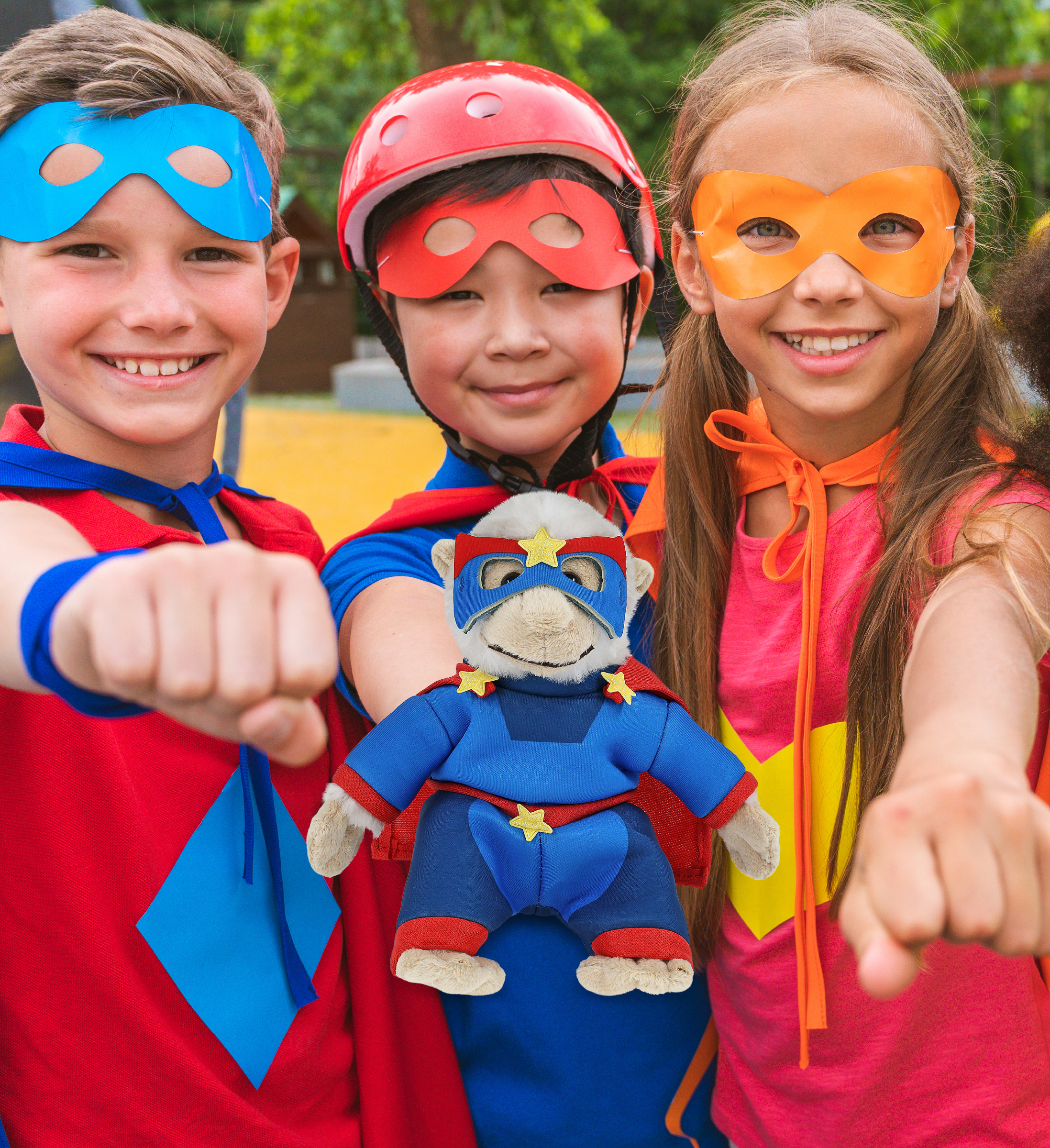 - Features a White Squirrel Monkey Wearing Superhero Stuffed Animal Clothing – With a mask, suit, and cape, this monkey stuffed plush toy comes with a playful and stylish look that results in two fun themes: wildlife and superheroes! Whether you’re searching for super heroes plush toys, stuffed animal outfits, or monkey figures with personality, this cute plush monkey adds charm to any toy shelf, room décor, or Halloween plush collection.