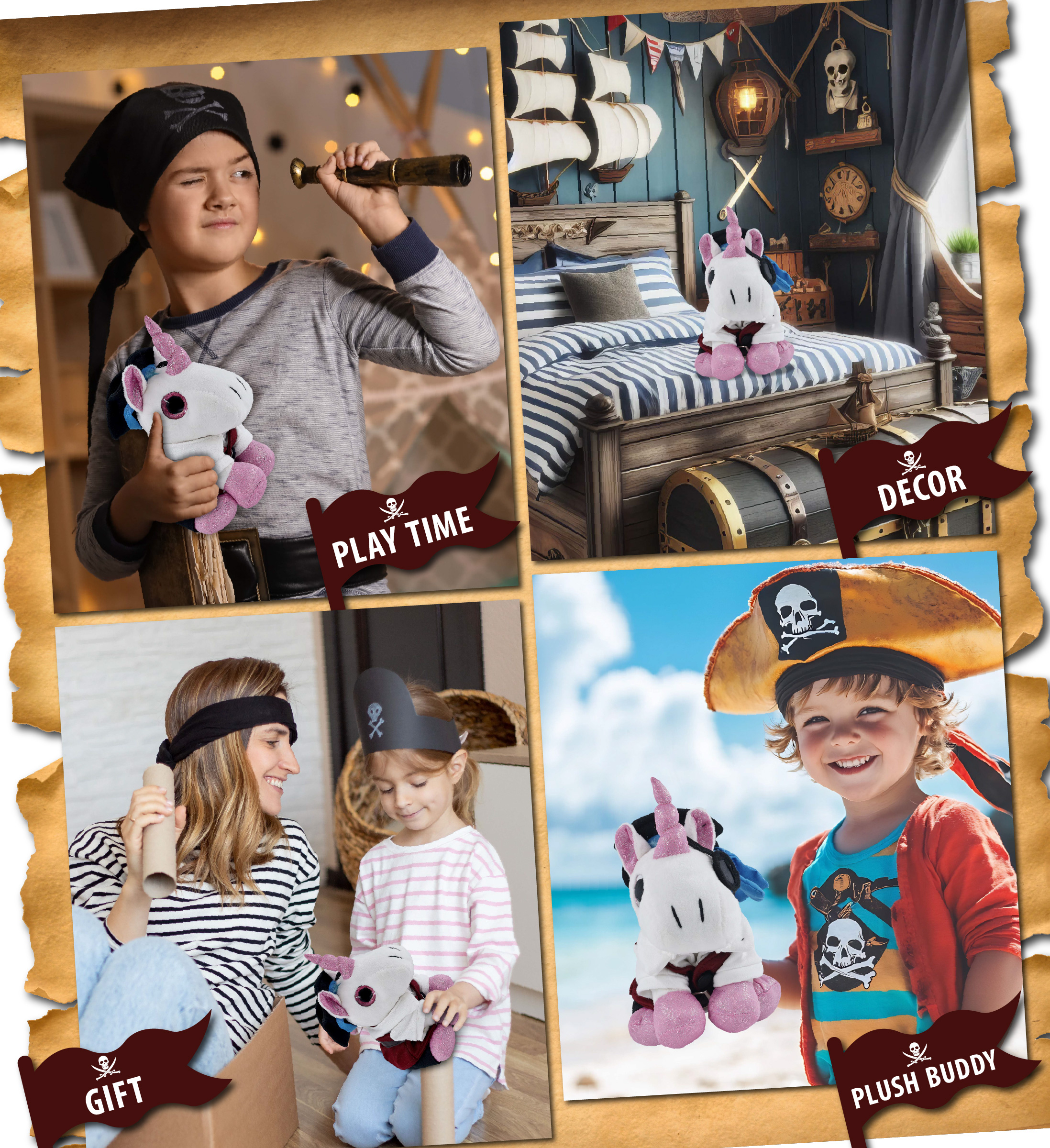 - Perfect Sparkle Eyes Plush White Unicorn Stuffed Toy for Plush Pirate Toy Enthusiasts – Whether you’re into stuffed animal accessories or pirate stuffed animal figures, this unicorn plush brings a fun twist to your stuffed animal collection. Great gifts for unicorn lovers or those who love pirate plush dolls or Halloween themed plush toys. Add it to your Halloween stuffed animals, share accessories with similar stuffed unicorns.