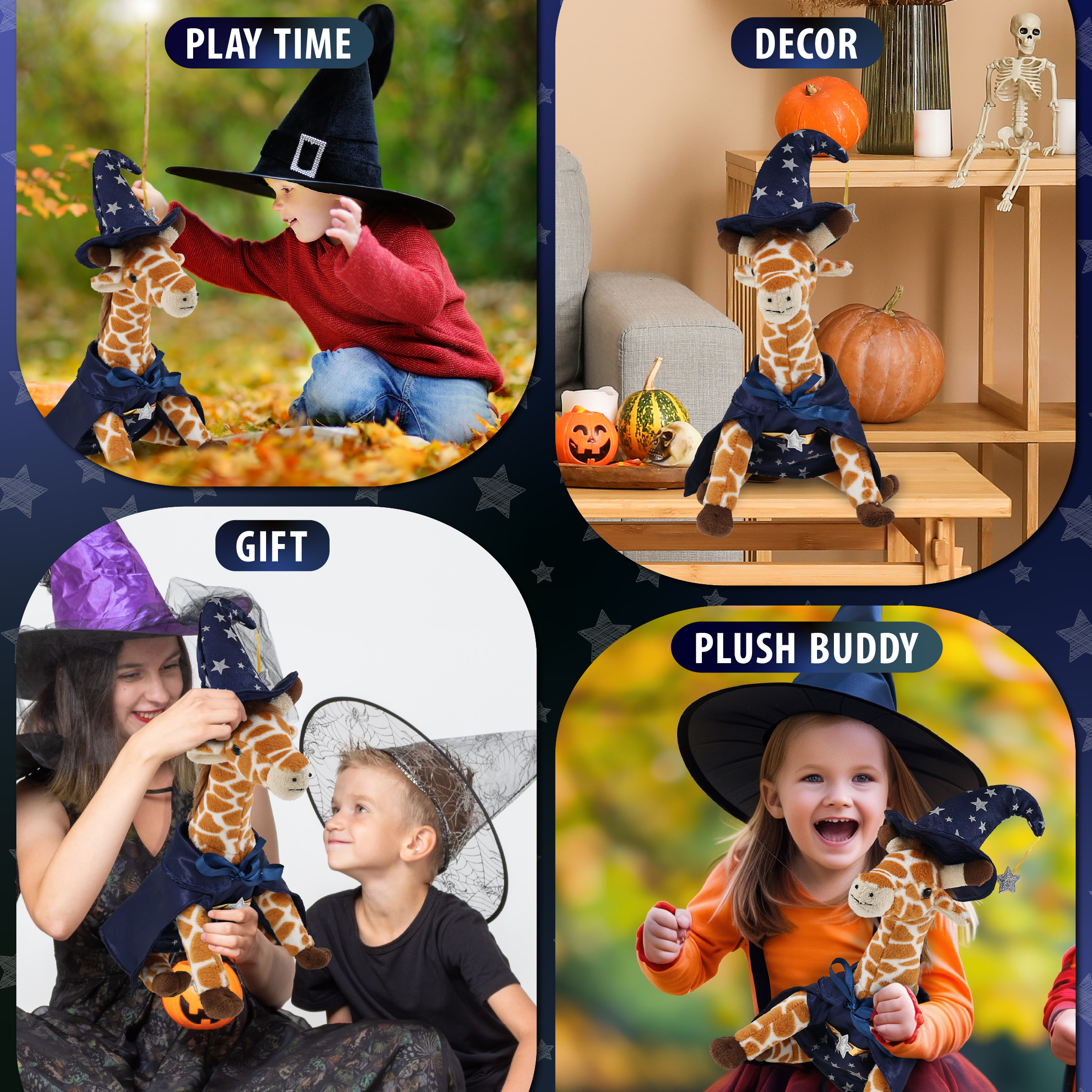 - Made of High-Quality Polyester – The giraffe plush wizard toy is made with super-soft, premium-quality polyester materials. The giraffe stuffed animal is designed for everyday hugs and dress-up fun. The giraffe wizard plush is a fun option for kids who love imaginative play and magical themes, making it an enchanting addition to your collection of Halloween costume sets for stuffed animals, giraffe plush toys, and giraffe accessories.