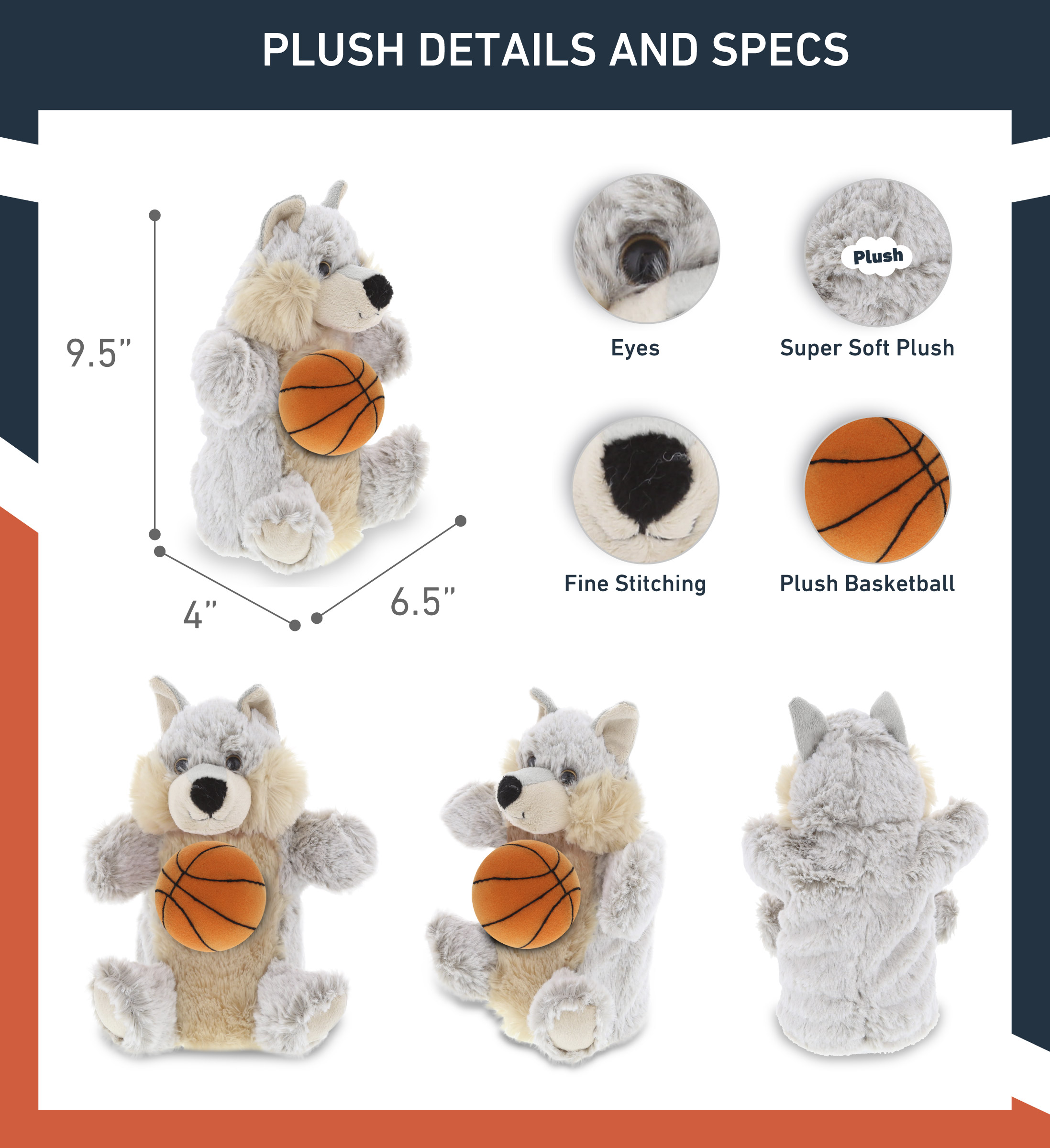 - Included with the Purchase of Adorable Cute Wolf Plush – Includes 1 DolliBu Wolf Hand Puppet Super Soft Plush with a basketball plush, decorated with realistic features of a cute plush animal. The wolf’s body with a sports gift ball plush makes the plush perfect for cuddles. The plush toy features details like its characteristic ears. The wolf’s eyes make the critter so charming. The plush toy buddy measures 6.5Lx4Wx9.5H inches.