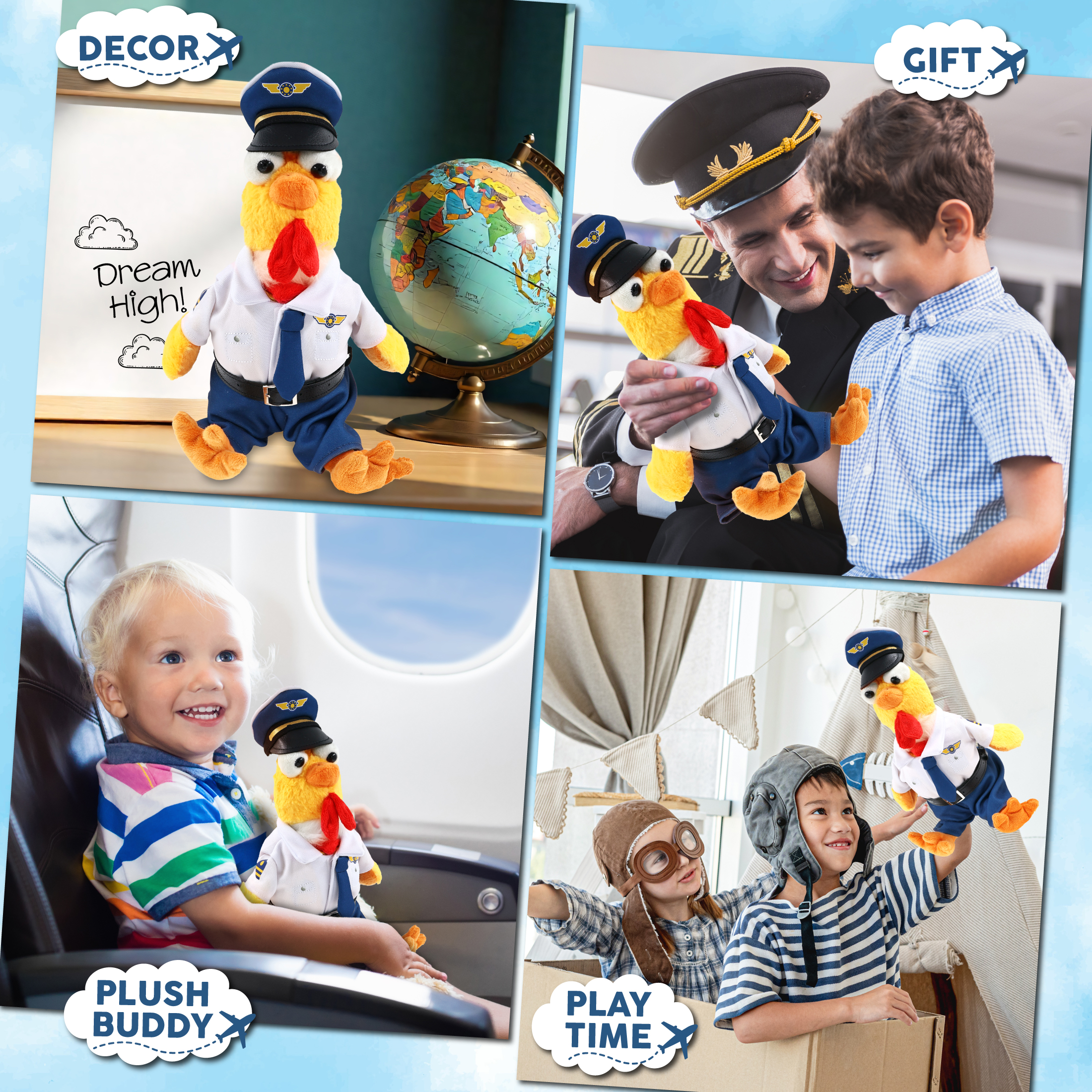 - The Pilot Stuffed Rooster Plush is Perfect for Aviation Lovers – Everyone who loves aviation will be thrilled to have a pilot stuffed bear, whether it’s a cute stuffed animal gift or a cute teddy bear plush for aviation-themed collections. Perfect pilot fluffy stuffed animal for flight pretend play and as a pilot rooster toy gifts for kids who aspire to be pilots when they grow up. Recommended for ages 3 and up.