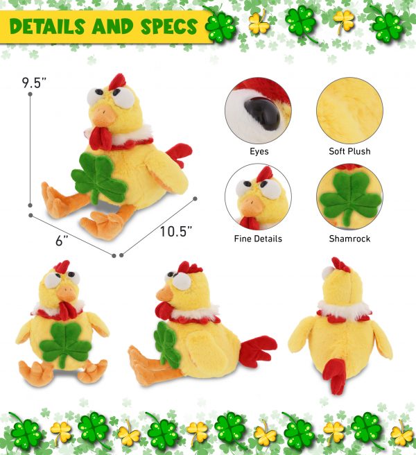 - THE SHAMROCK PLUSH ROOSTER IS FOR EVERYONE WHO LOVES STUFFED ANIMALS – The soft plush stuffed animal Yellow Rooster toy with an Irish shamrock is for everyone looking for cute stuffed animals to celebrate St Patricks Day. Perfect for Saint Patricks Day decor or cool prizes on St Patricks Day Games. Let the good and fun times roll with this rooster with a green plush shamrock; cute green St Patricks Day Gift to give this festive season.