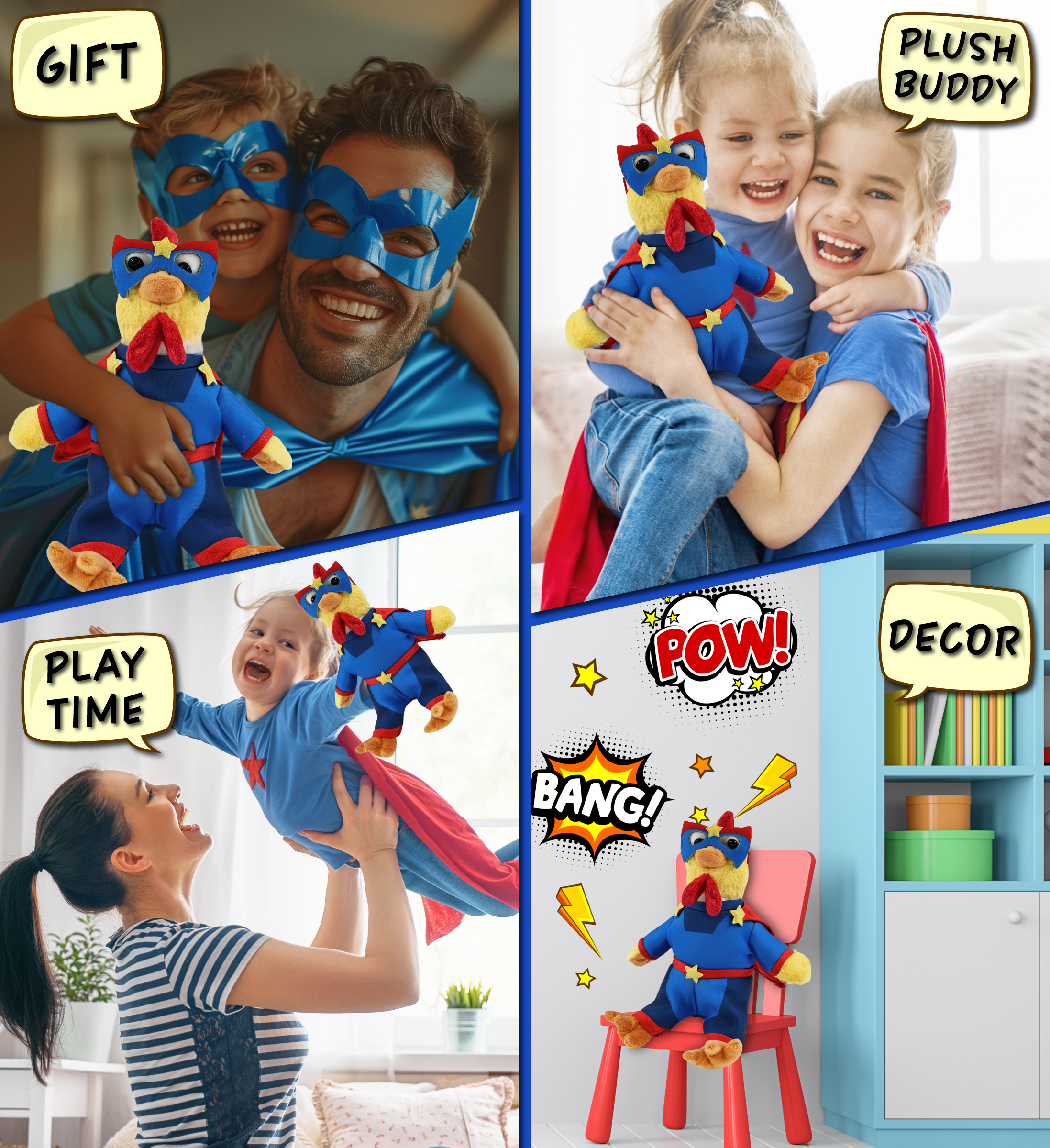 - Perfect for Everyone Who Loves Superheroes – Everyone who loves customizable stuffed animal toys will be thrilled to have a super hero stuffed Yellow Rooster. Whether it’s a cute stuffed animal gift or a superhero teddy for a super hero themed room, this plush makes a thoughtful surprise. Ideal for birthdays, Halloween, or everyday fun. Perfect to bring along on pretend-play save-the-day adventures.