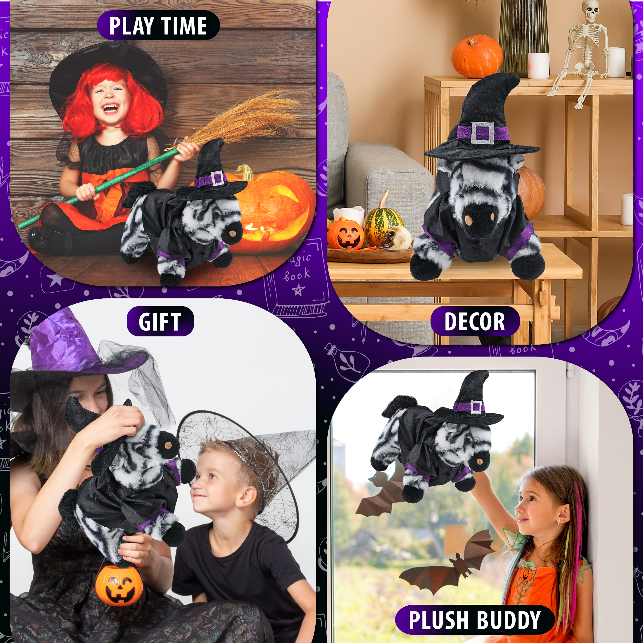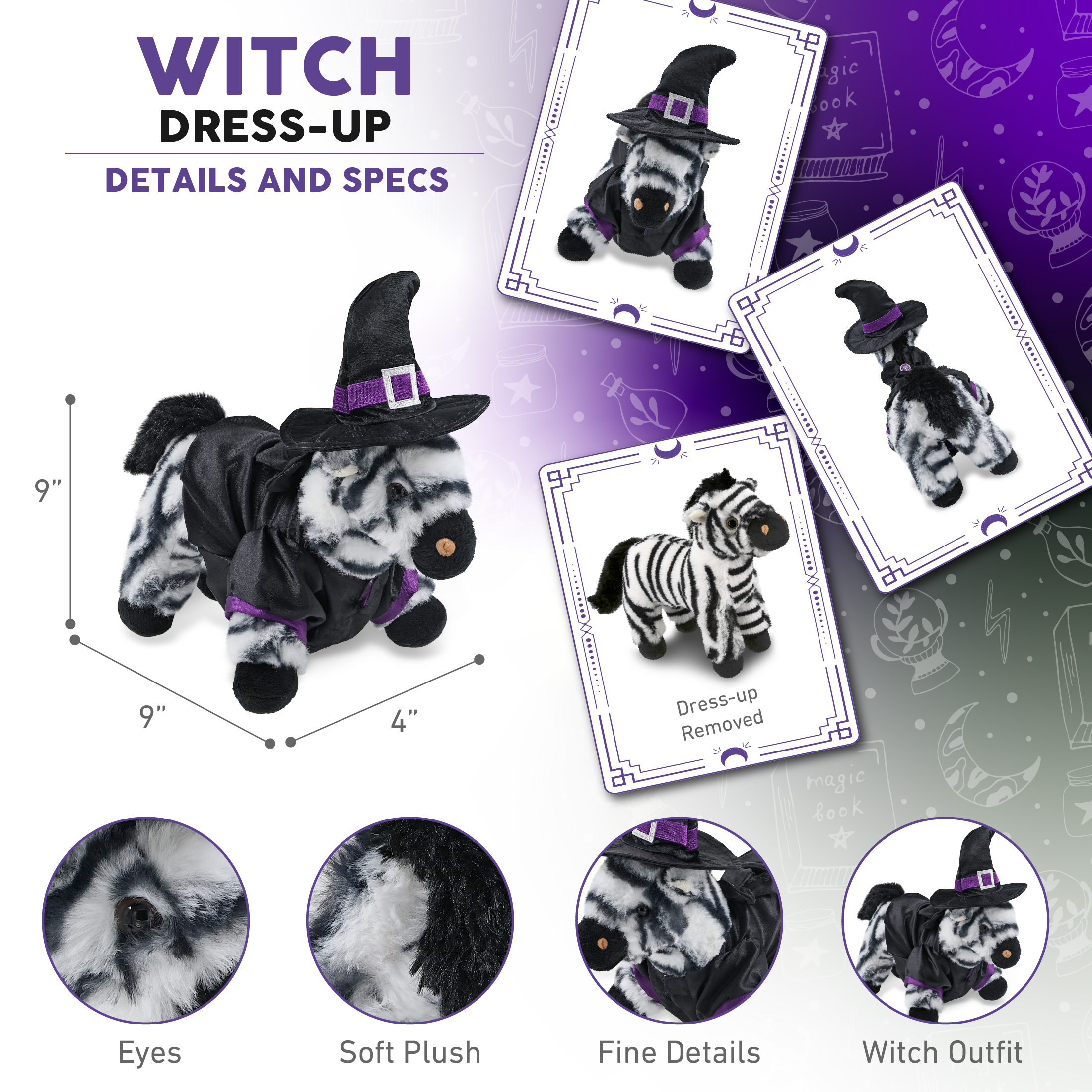 - Perfect for Those Who Love Spooky Stuffed Animals – Everyone who loves spooky stuff and witch toys for girls and boys will be thrilled to get this zebra stuffed animal with witch plush clothes. Perfect addition to your Halloween decor or as a spooky gift. Ideal Halloween themed gifts for fans of cute plush toys dressed up in clothes to dress and undress with a cute Halloween costume. Recommended for ages 3 and up.