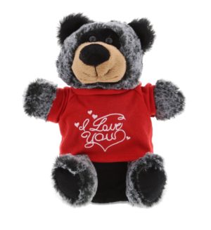 DolliBu I LOVE YOU Super Soft Plush Black Bear Hand Puppet with Red Shirt 9″