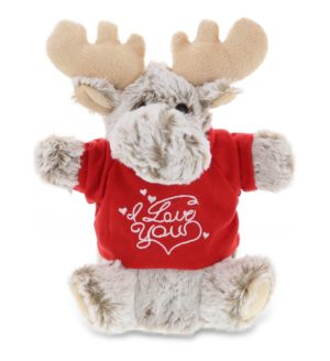 DolliBu I LOVE YOU Super Soft Plush Moose Hand Puppet with Red Shirt 11″
